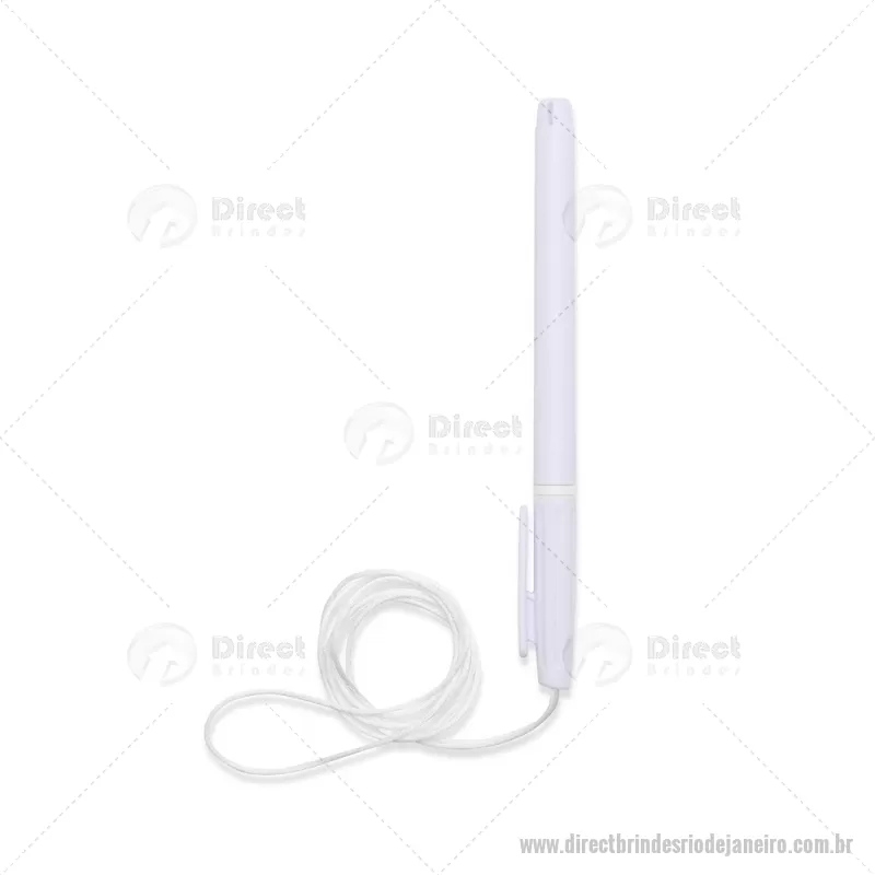 Caneta plástica com carga esferográfica azul 1,0 mm, acompanhada de cordão em nylon de 42 cm fixado na tampa. Leve e prática para uso diário. - - DRTJJCPL208