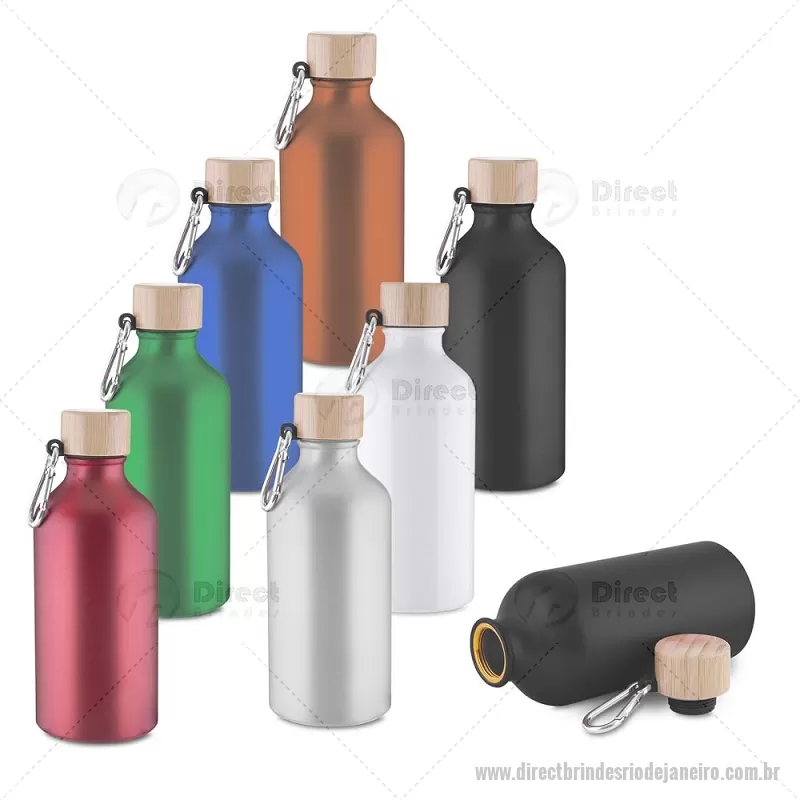 Garrafa com capacidade de 550 ml, produzida em alumínio reciclado e com acabamento fosco, proporcionando leveza, resistência e um visual moderno. Acompanha tampa rosqueável com detalhe em bambu e mosquetão integrado, ideal para transporte prático no dia a dia. A versão na cor branca conta com acabamento brilhoso, garantindo um toque diferenciado e elegante. - - DRTJJGAR180