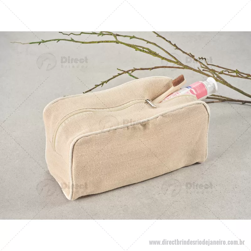 Nécessaire de cosméticos em juco (mistura de algodão e juta, 260g/m²) em juco com interior forrado em 70% algodão reciclado e 30% poliéster reciclado Bolsa de cosméticos em juco (mistura de algodão e juta, 260g/m²) com interior forrado em tecido 70% algodão reciclado e 30% poliéster reciclado. Compartimento espaçoso com zíper. 250 x 130 x 100 mm Peso do Produto (g.): 110 - - DRTJJNC135