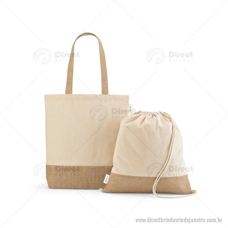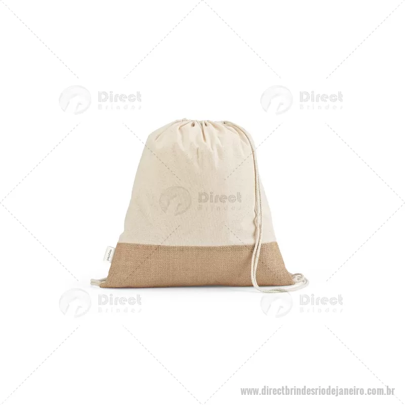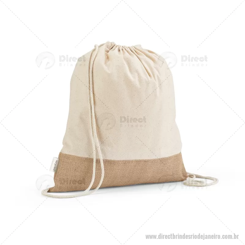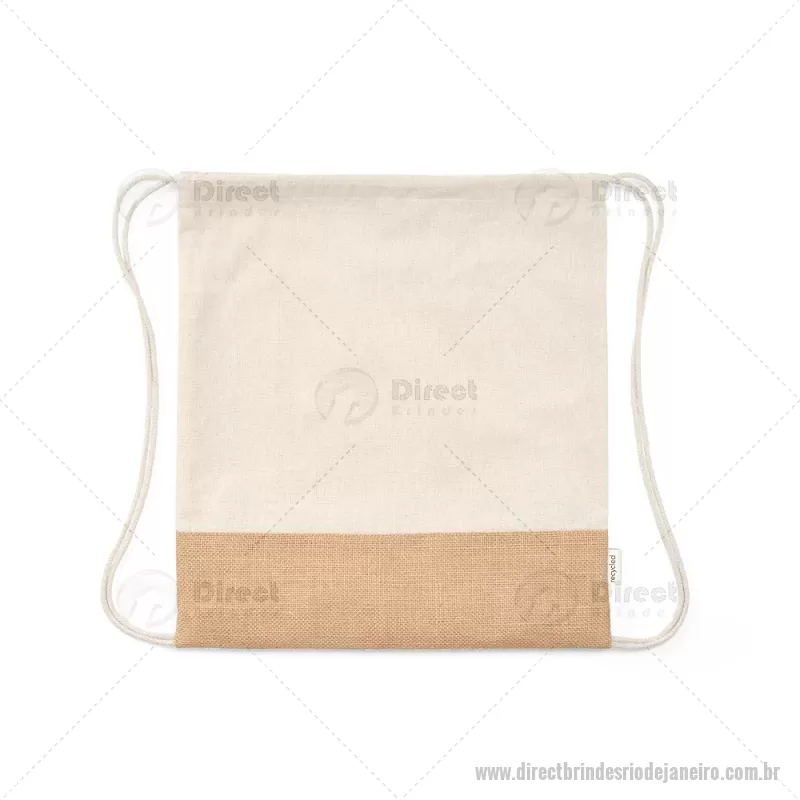 Sacola tipo mochila em 70% algodão reciclado e 30% poliéster reciclado (180 g/m²) com base em juta. Alças em algodão. Medidas prontas: 370 x 410 mm - - DRTJJMCS036