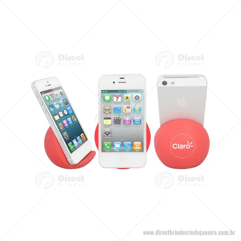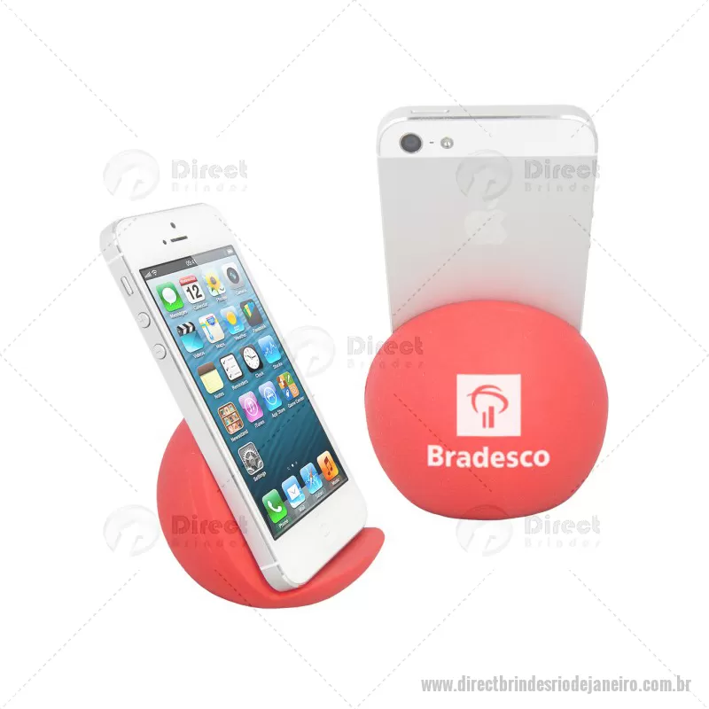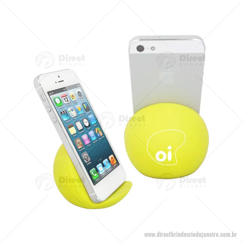 Porta celular / Apoio para smartphone de mesa Personalizado. Feito em vinil oca e disponível em várias cores. Material: Vinil - Especificação: Vinil (Policloreto de vinil) Disponível nas cores: vermelho, azul, azul escuro, azul claro, verde, verde escuro, verde claro, amarelo, laranja, preto, branco. Informação: Pantones específicos a partir de 1000 peças. Tipo de gravação: Tampografia Area de gravação: 40mm Ø Medida Produto: 65mm A x 75mm L x 70mm Peso: 45g Quantidade Mínima: 100 un - - DRTJJTEC065