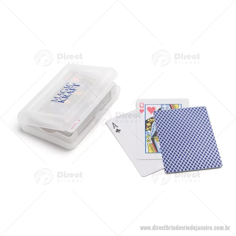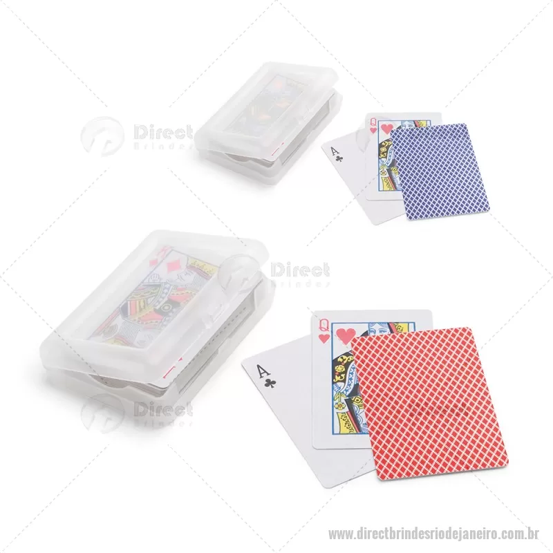 Baralho de 54 cartas em papel plastificado. Fornecido numa caixa rígida / estojo em PP. Medidas: 100 x 70 x 20 mm Peso do Produto (g.): 94 - - DRTJJJOG010