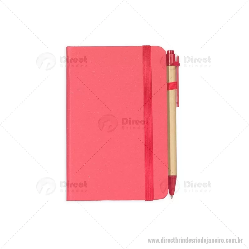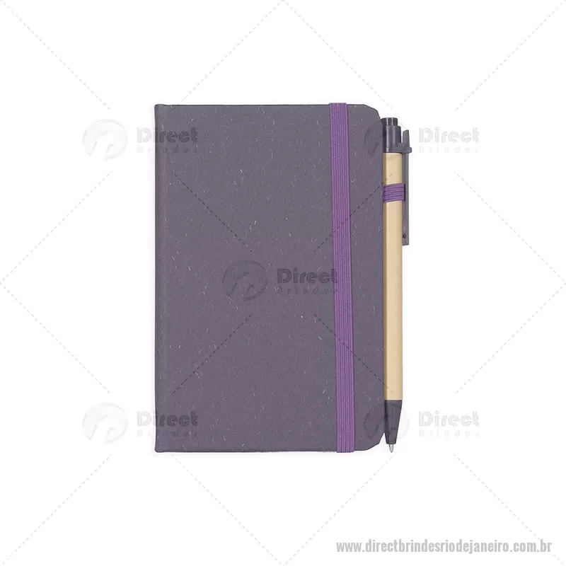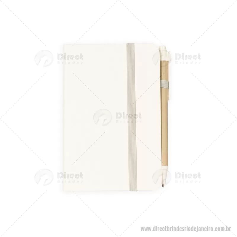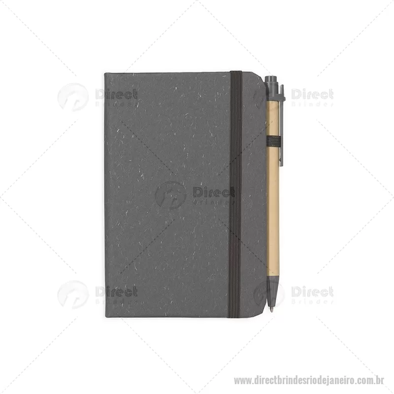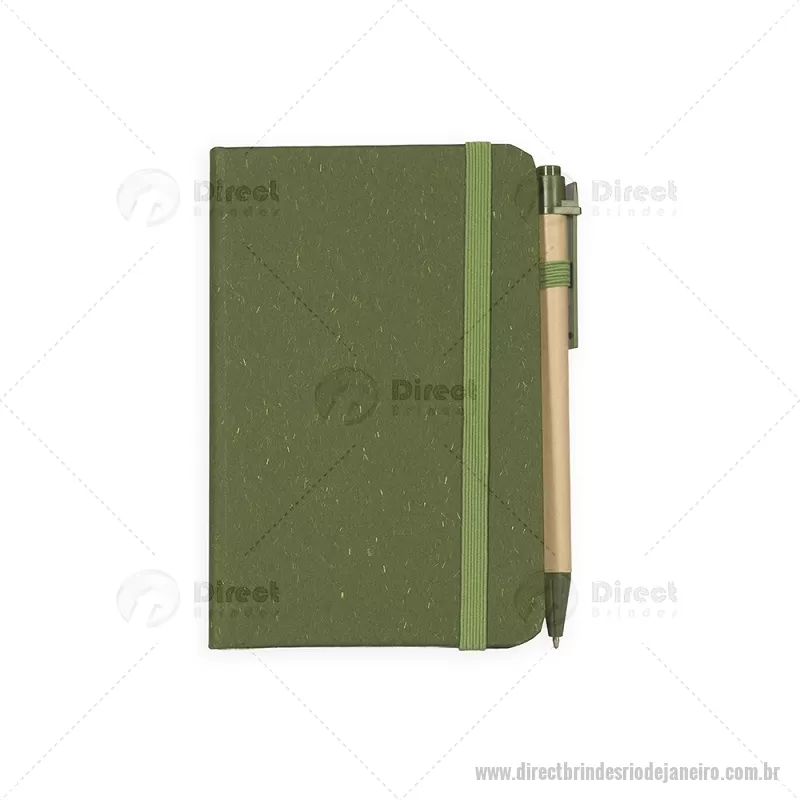 Caderneta ecológica com capa dura revestida em fibra de palha de trigo, contendo cerca de 80 folhas pautadas, duas folhas de guarda, elástico para fechamento e porta-canetas. Acompanha caneta esferográfica azul 1,0 mm com corpo em papelão, clip e acionamento por clique. - - DRTJJBLC270