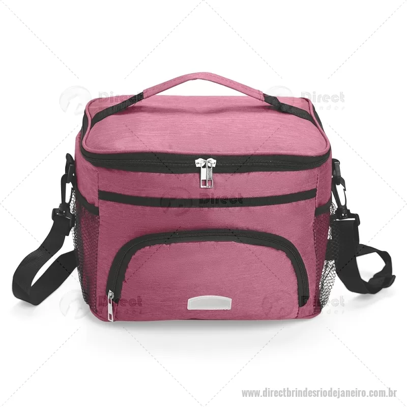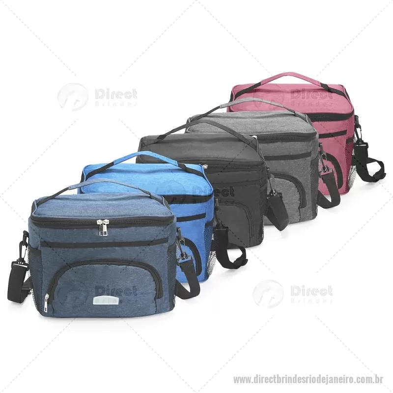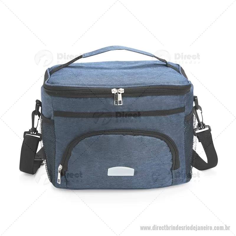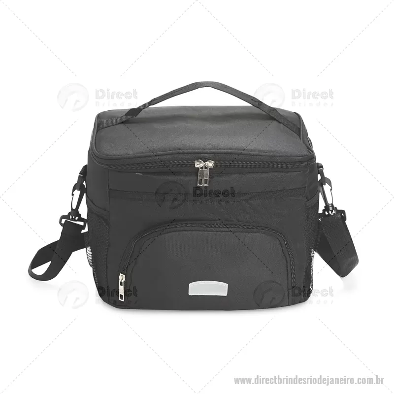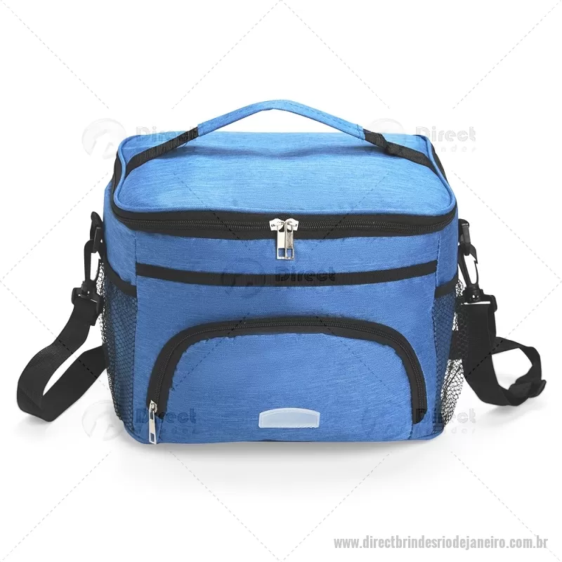 Bolsa térmica de 10 litros feita em poliéster resistente à água, com revestimento interno em PVC laminado. Conta com bolso frontal com zíper, dois bolsos laterais em tela, alça superior fixa e alça transversal removível. Prática e ideal para levar alimentos e bebidas no dia a dia. - - DRTJJBT103