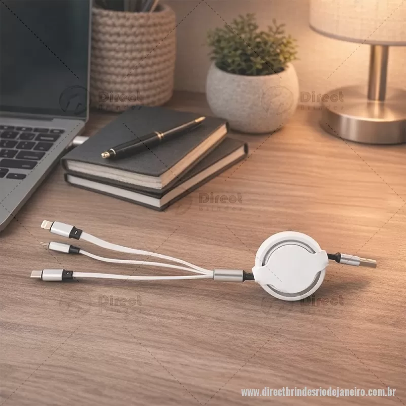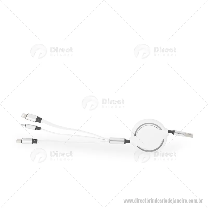 Cabo USB retrátil 3 em 1 com extensão máxima de 1m. Possui conectores USB-C, Micro USB e Lightning em uma extremidade e conector USB-A na outra. Observação: cabo destinado apenas à recarga; não realiza transferência de dados. Altura : 24 cm x Largura : 5 cm Comprimento : cabo 100cm Peso aproximado (g): 37 - - DRTJJTEC549