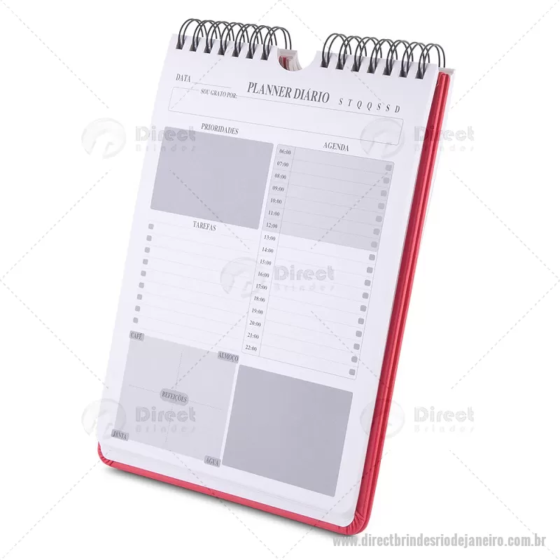 Caderno Planner com capa em PU 2 mm, 90 folhas 95 g/m², páginas para preenchimento diário, incluindo seções de prioridades, agenda do dia, tarefas e horários para refeições. Peso do Produto: 0,382kg Dimensão do Produto: 22,5x15,7cm - - DRTJJCAD036