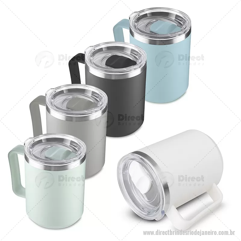 Caneca com capacidade de 450 ml, produzida em plástico PP com interior em inox 304, auxiliando na conservação da temperatura do líquido. Possui alça ergonômica e tampa plástica com vedação de encaixe, proporcionando praticidade e conforto no uso diário. - - DRTJJCAN107