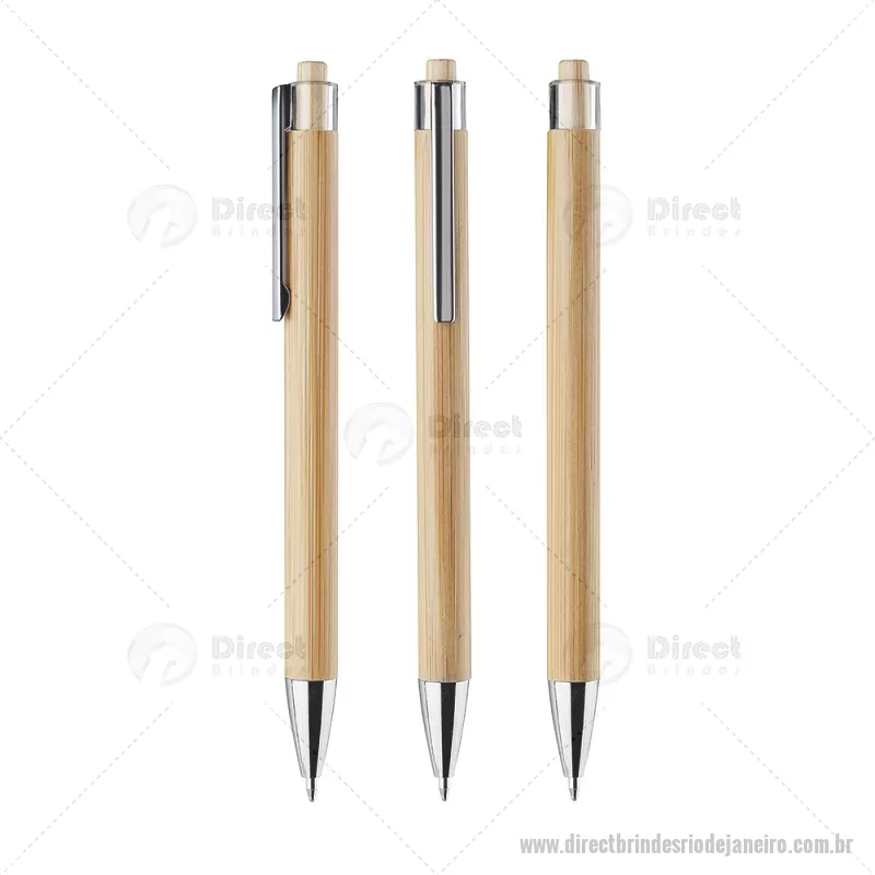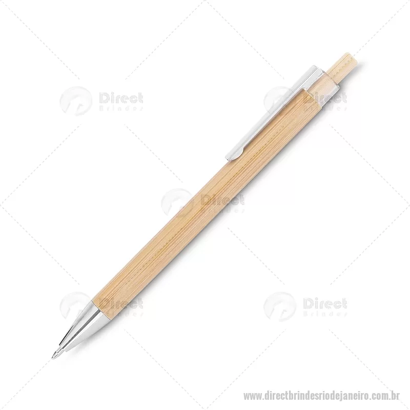Caneta com corpo em bambu, acionador em bambu com detalhe plástico, ponteira e clipe cromado. Dimensão Produto: 14xø1cm Peso do Produto: 0,007kg - - DRTJJCPECO072