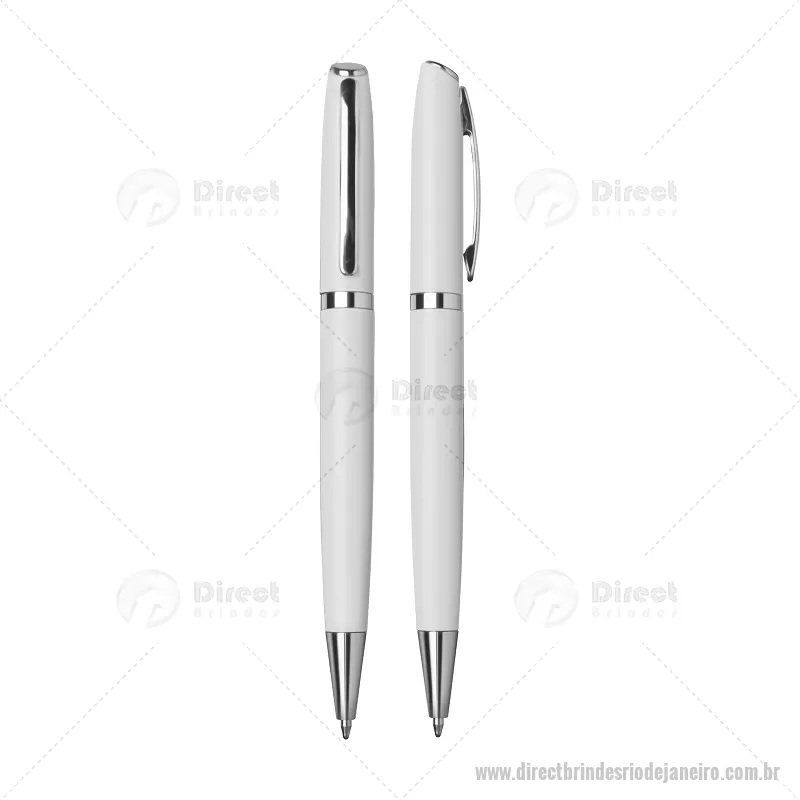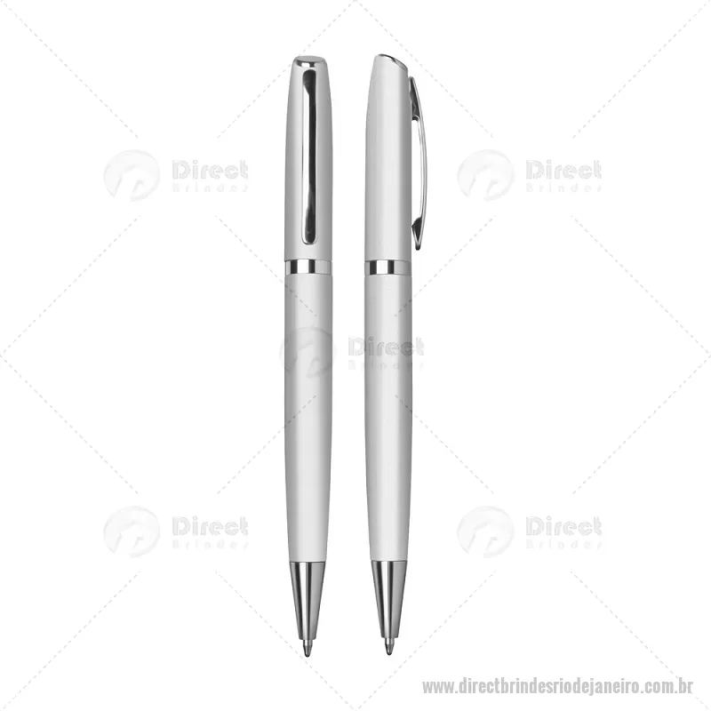 Caneta de Alumínio esferográfica. Acionamento retrátil por giro com detalhe prateado e escrita macia azul. Consultar cores disponíveis. Gravação a laser. - - DRTJJCMT086
