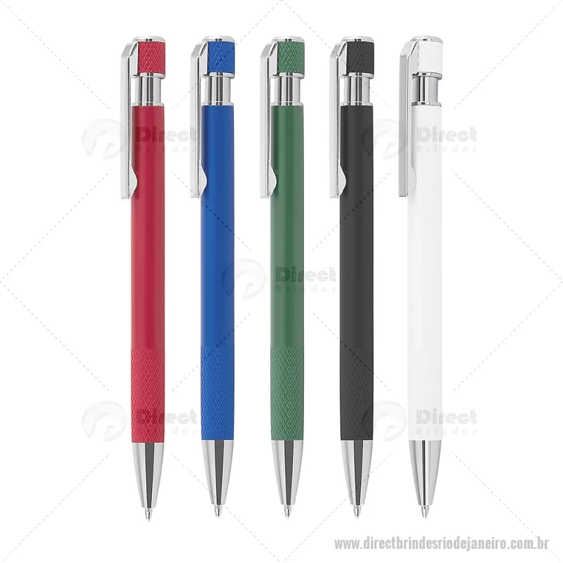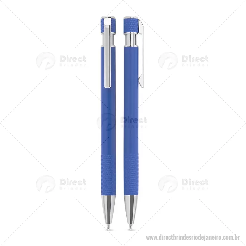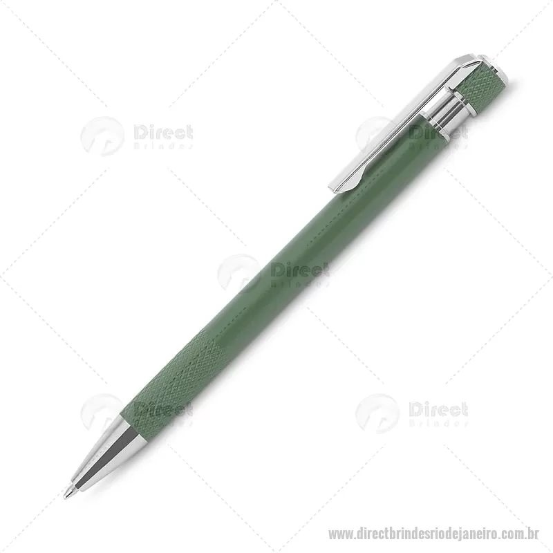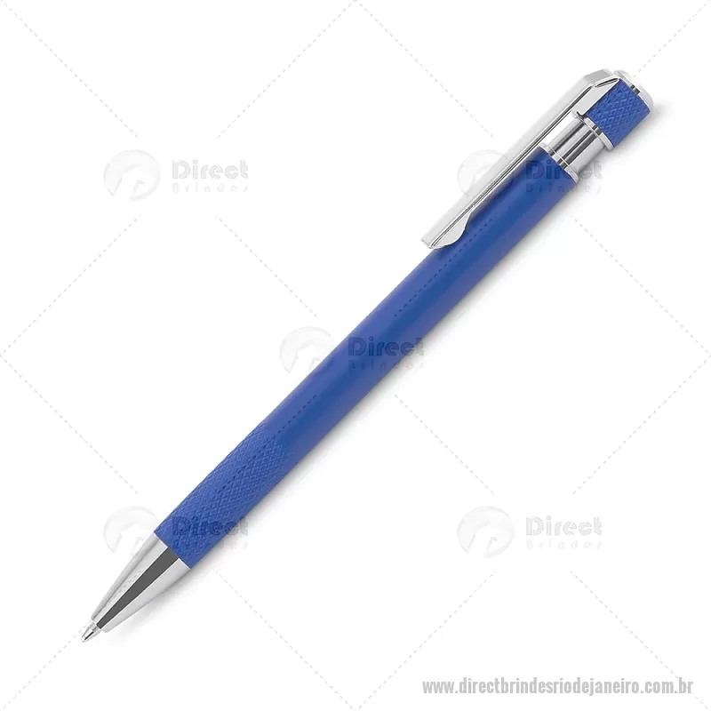 Caneta esferográfica com corpo em alumínio reciclado, acionador e clipe cromado, escrita em tinta azul. Refil substituível tipo Parker. Peso do Produto: 0,016kg Dimensão do Produto: 13,6xø0,9cm - - DRTJJCMT306