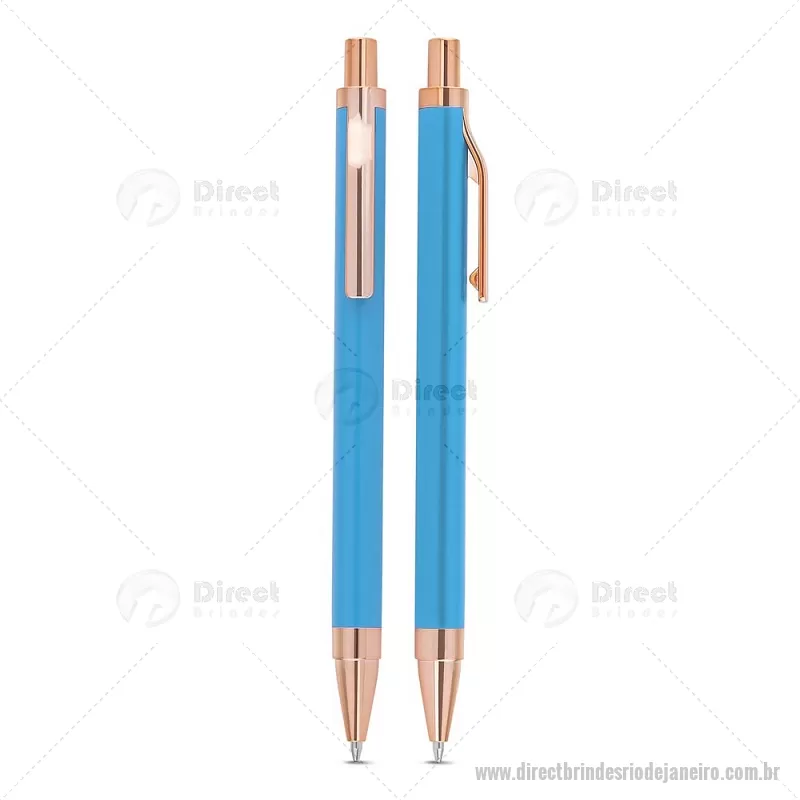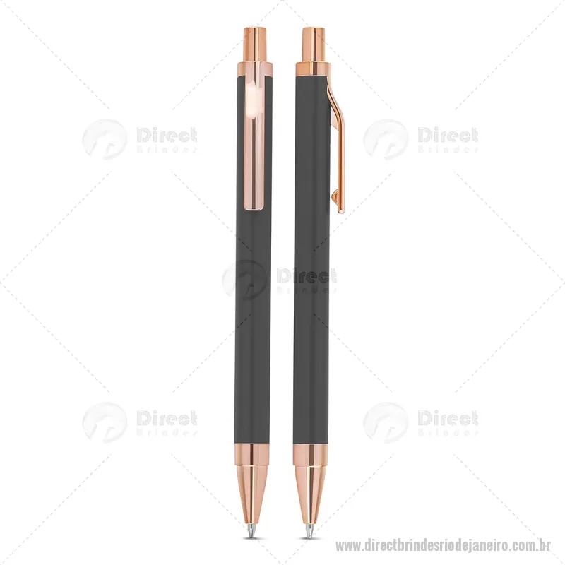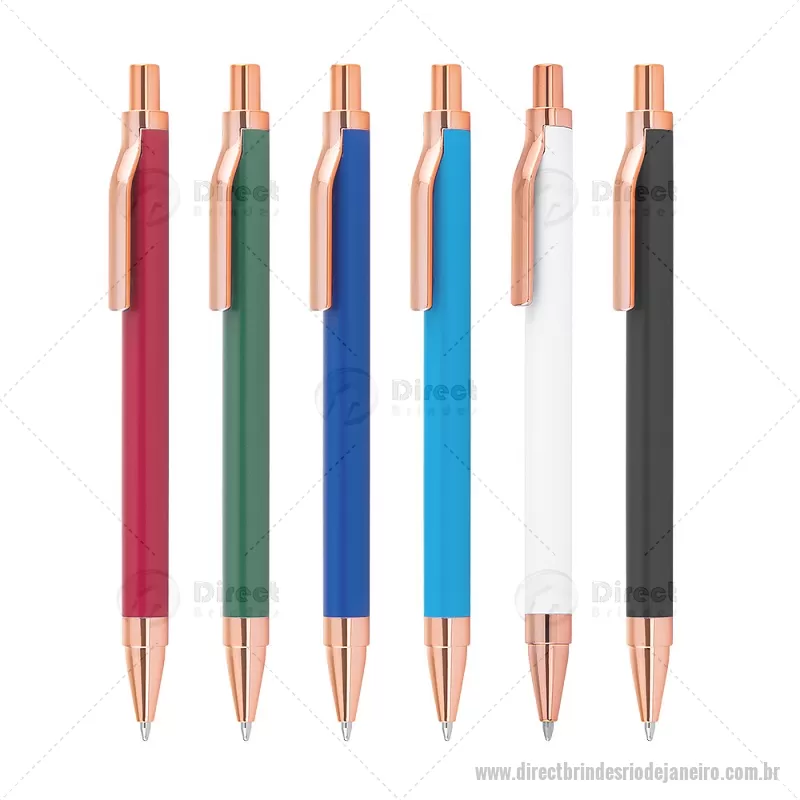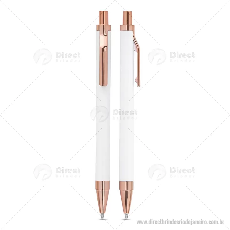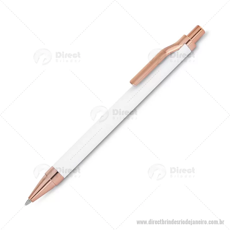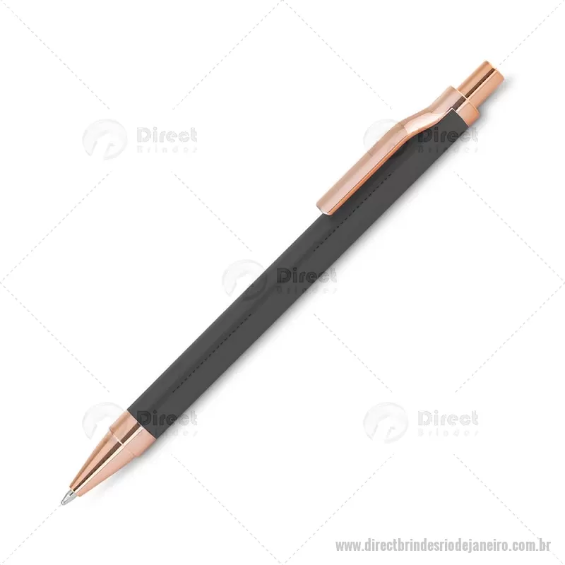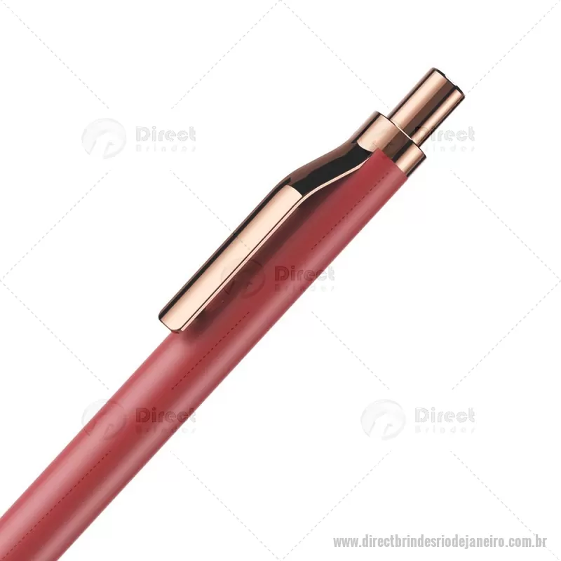 Caneta esferográfica com corpo em alumínio reciclado, acionador e clipe em acabamento rosé/bronze. Peso do Produto: 0,014kg Dimensão do Produto: 13,8xø1cm - - DRTJJCMT307