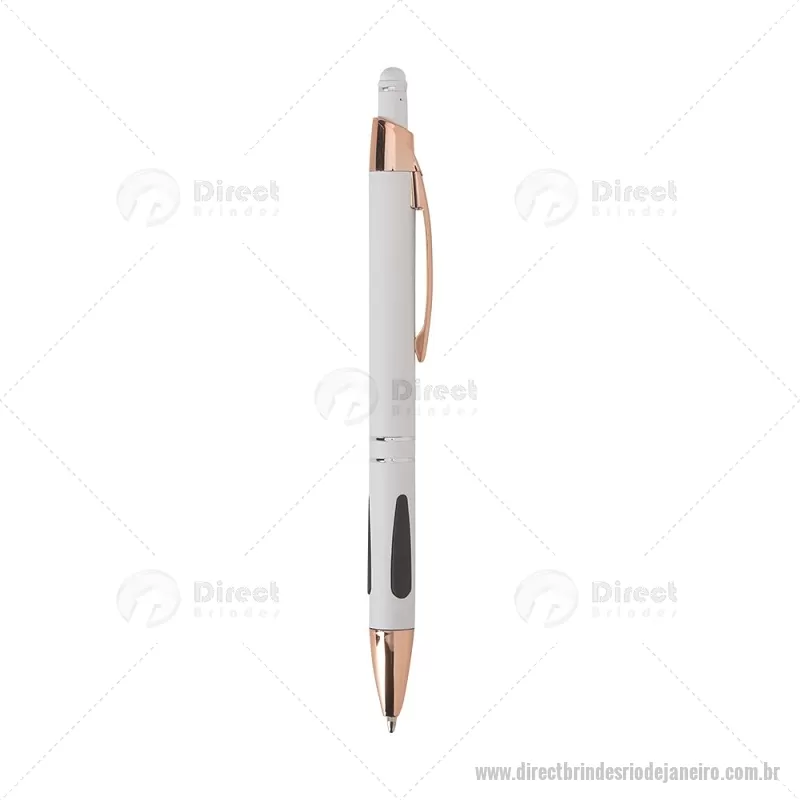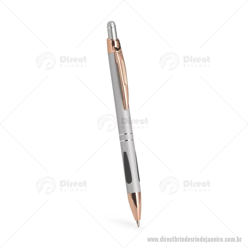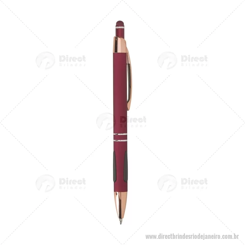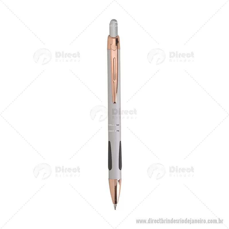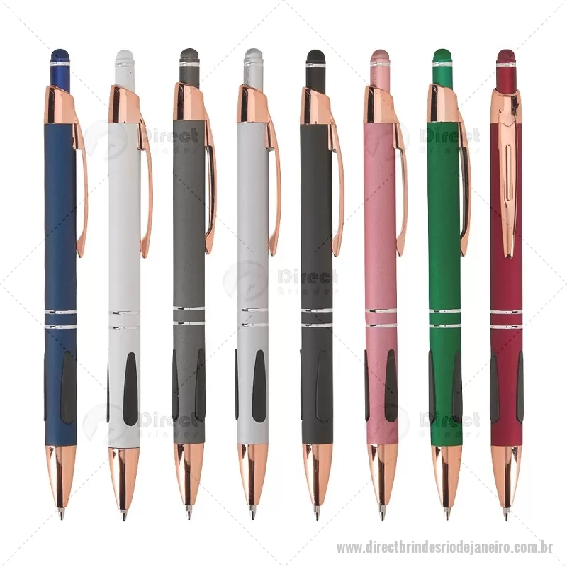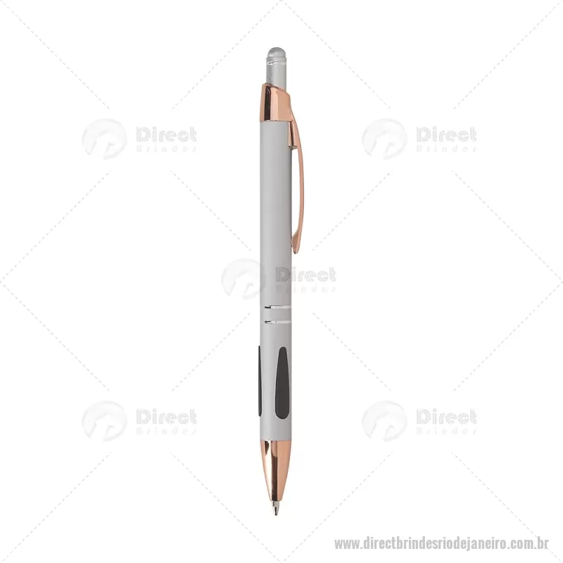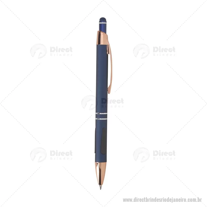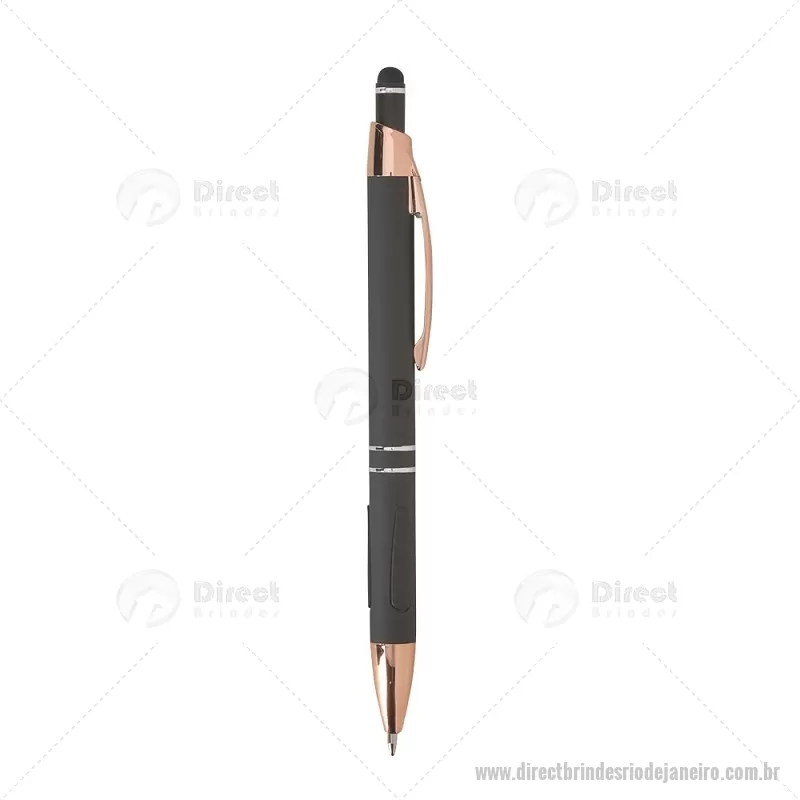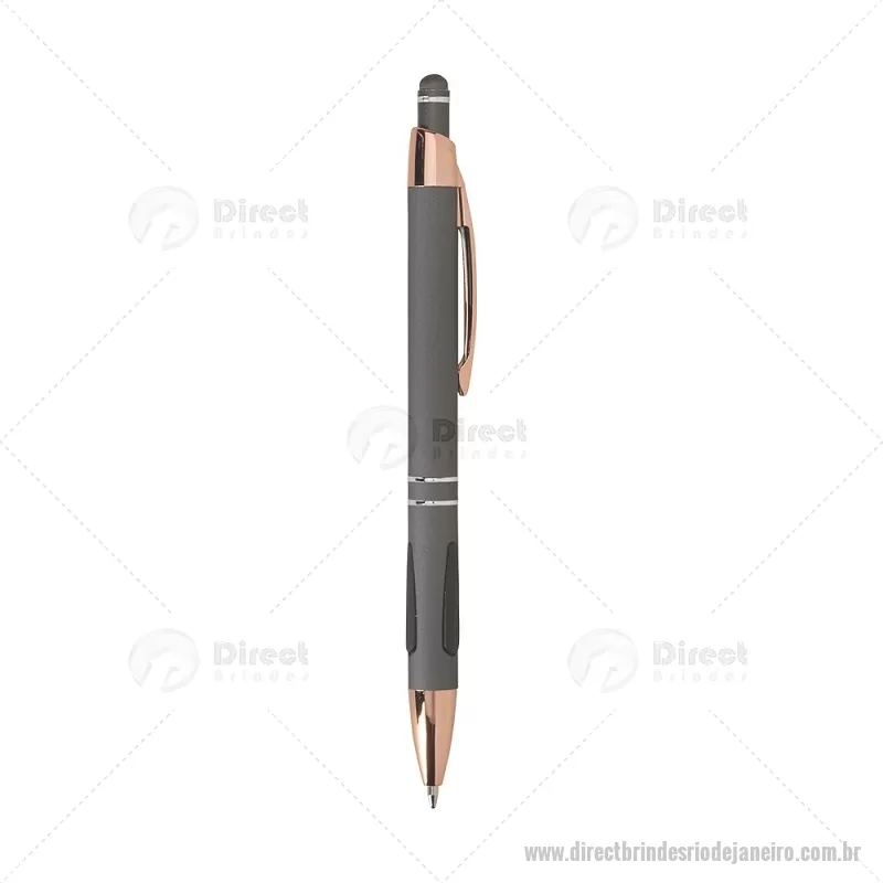 Caneta em metal com detalhes emborrachados, carga esferográfica azul 1,0 mm e acionamento por clique. Possui ponta touch emborrachada para uso em telas sensíveis ao toque, unindo escrita e praticidade em um só item. - - DRTJJCMT295
