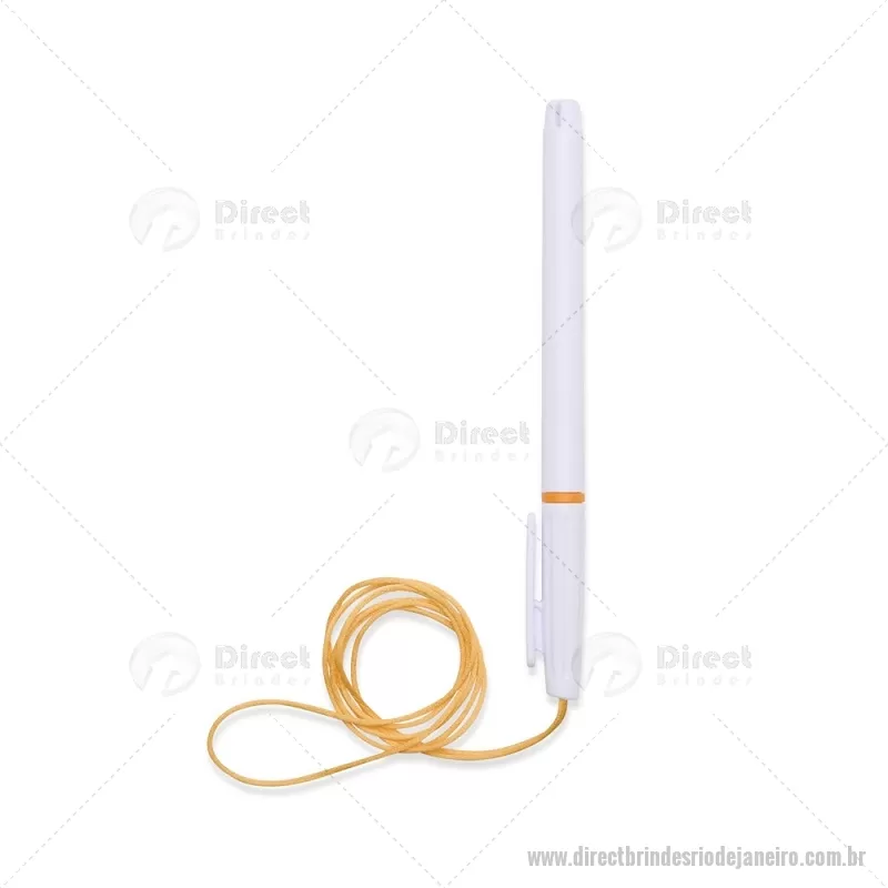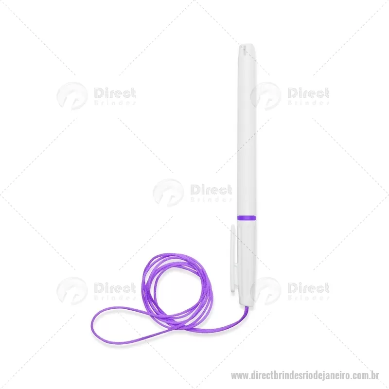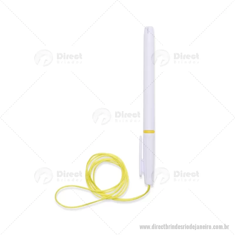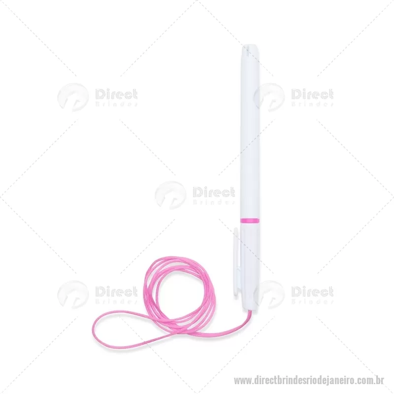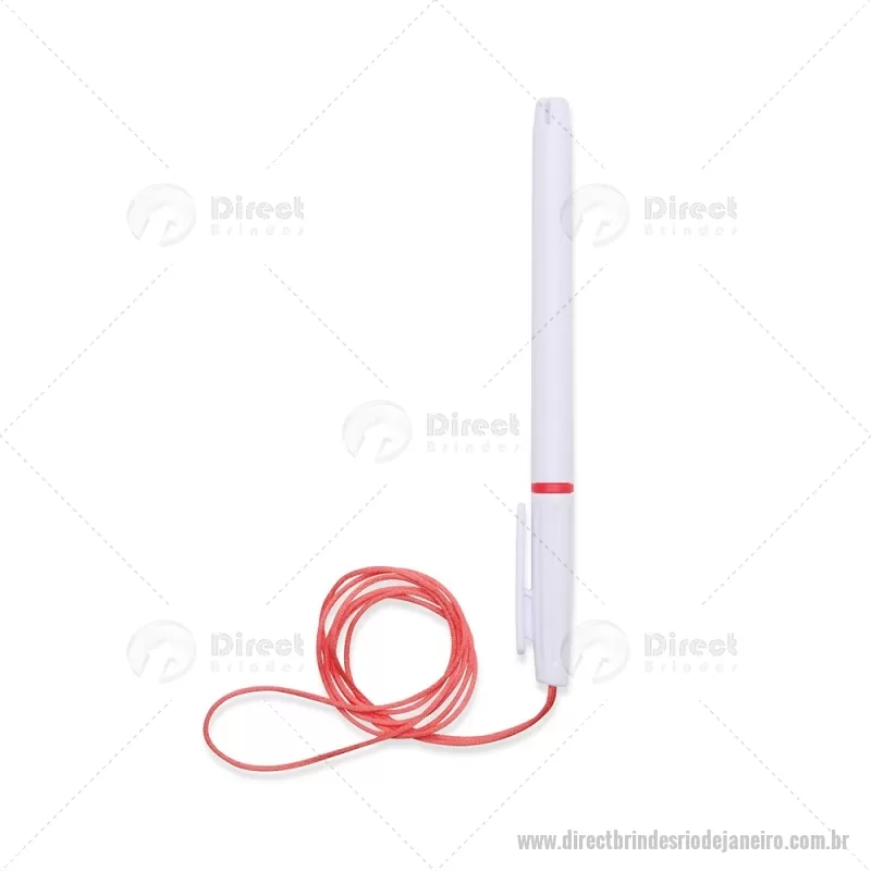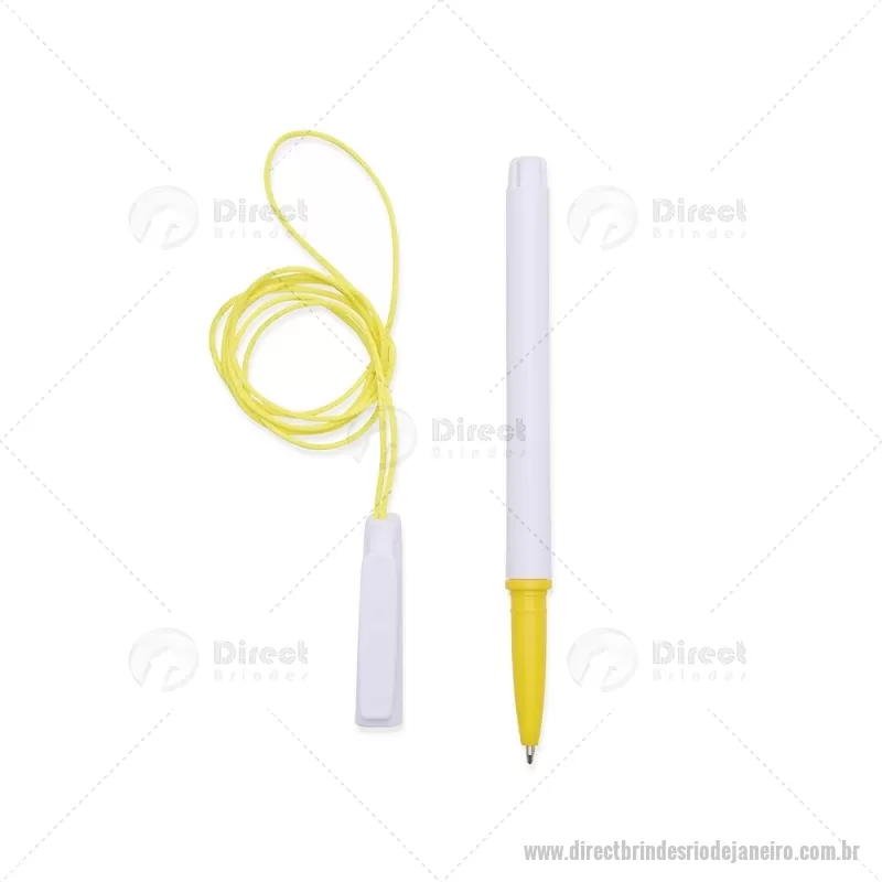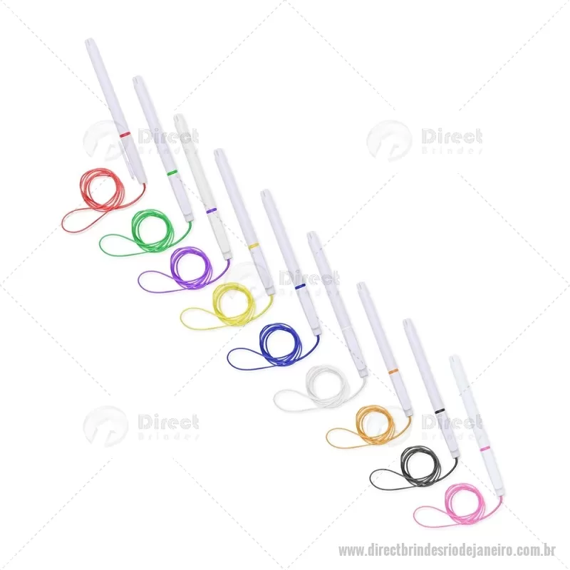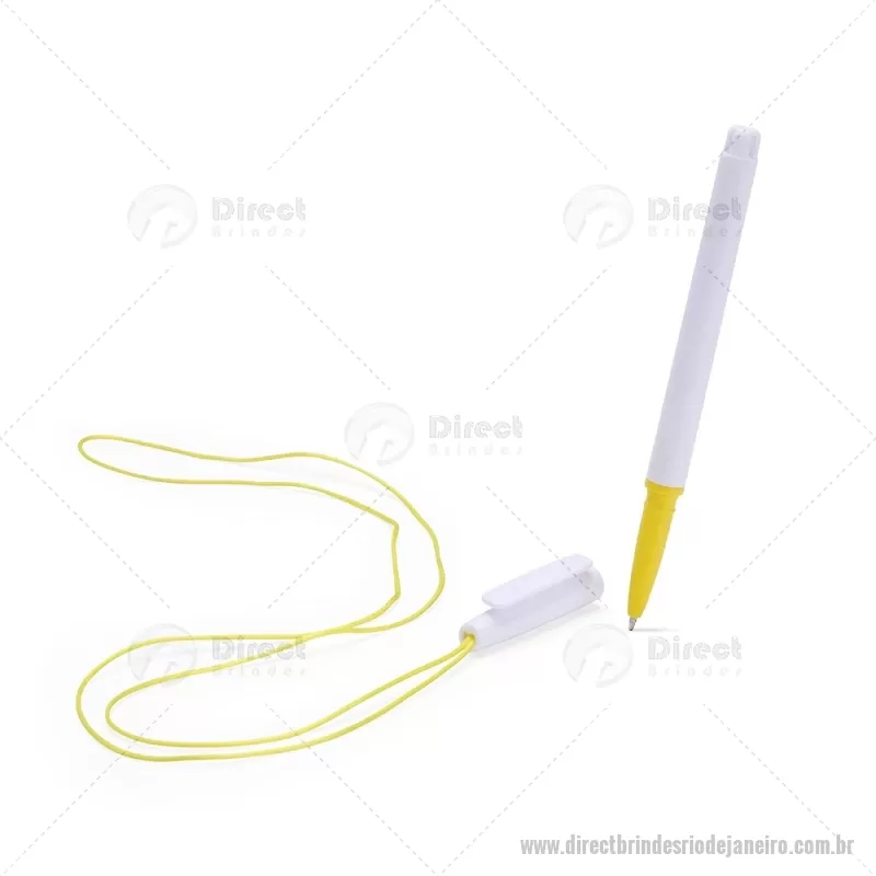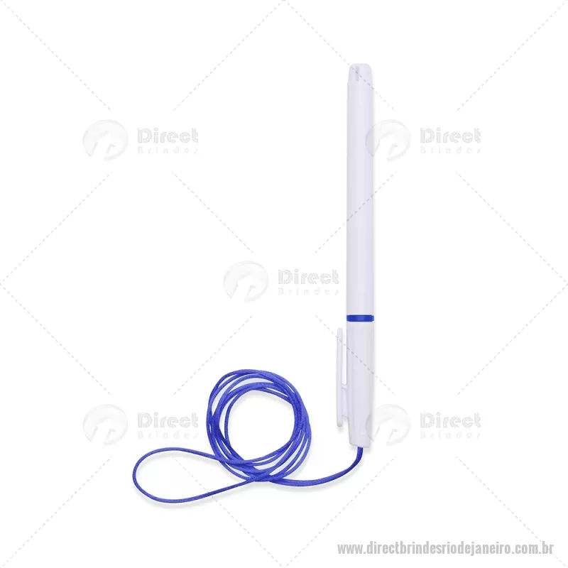 Caneta plástica com carga esferográfica azul 1,0 mm, acompanhada de cordão em nylon de 42 cm fixado na tampa. Leve e prática para uso diário. - - DRTJJCPL208