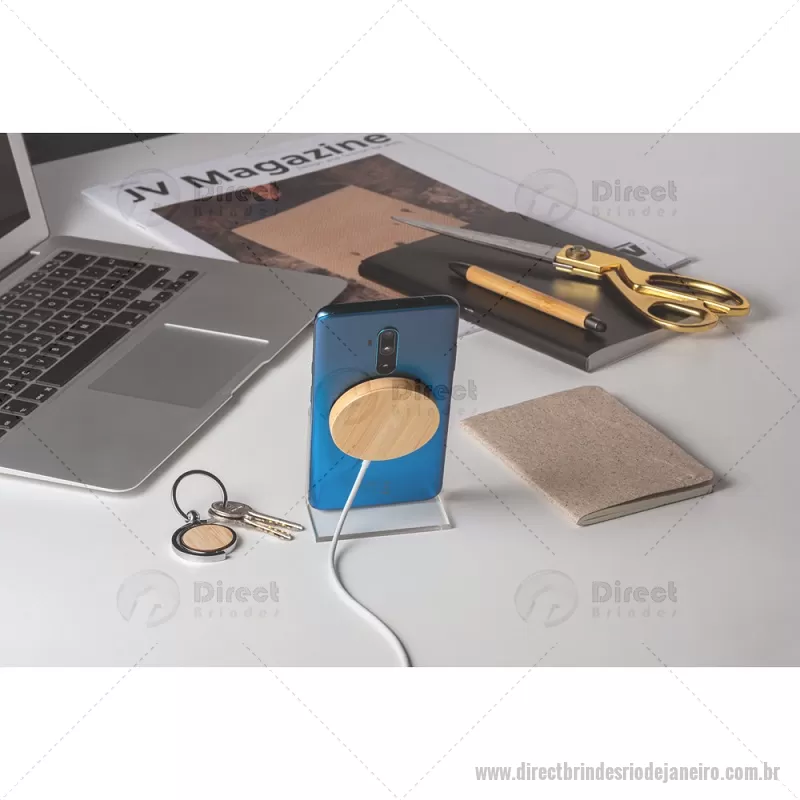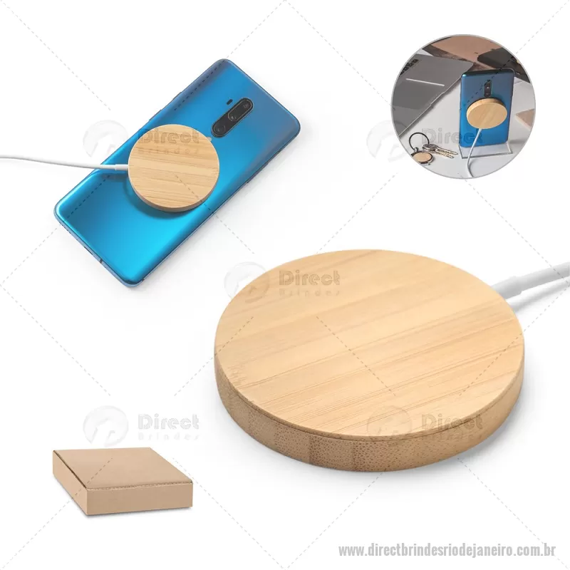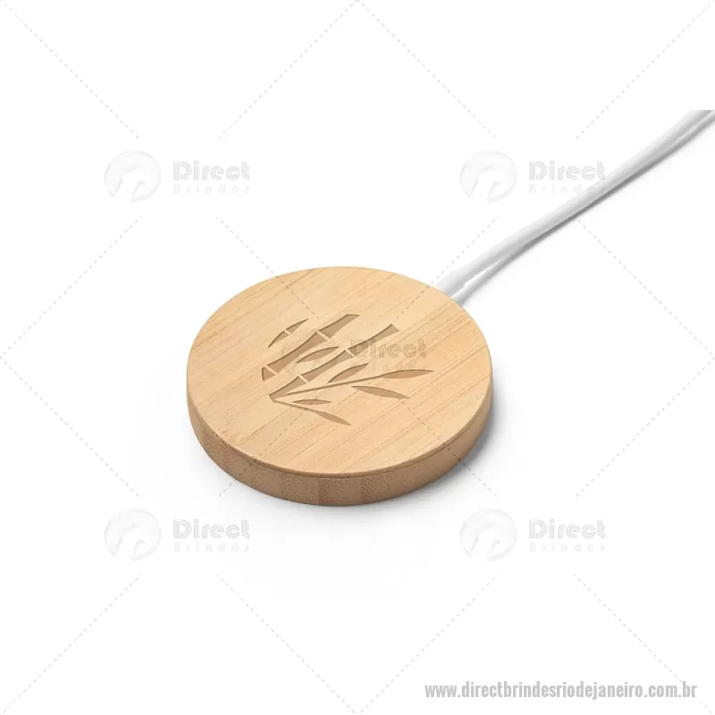 Carregador magnético por indução super-rápido em bambu 15 W Carregador magnético por indução (wireless) super-rápido em bambu. Potência de carregamento super-rápido de 15W. Incluso cabo de carregamento USB-C de 1 metro. Compatível com dispositivos móveis com tecnologia de carregamento sem fios. Fornecido em caixa presente de papel kraft reciclado. A cor e o resultado da impressão nos materiais naturais pode variar entre produtos. Medidas Produto: Ø59 x 8 mm Peso do Produto (g.): 35 - - DRTJJTEC533