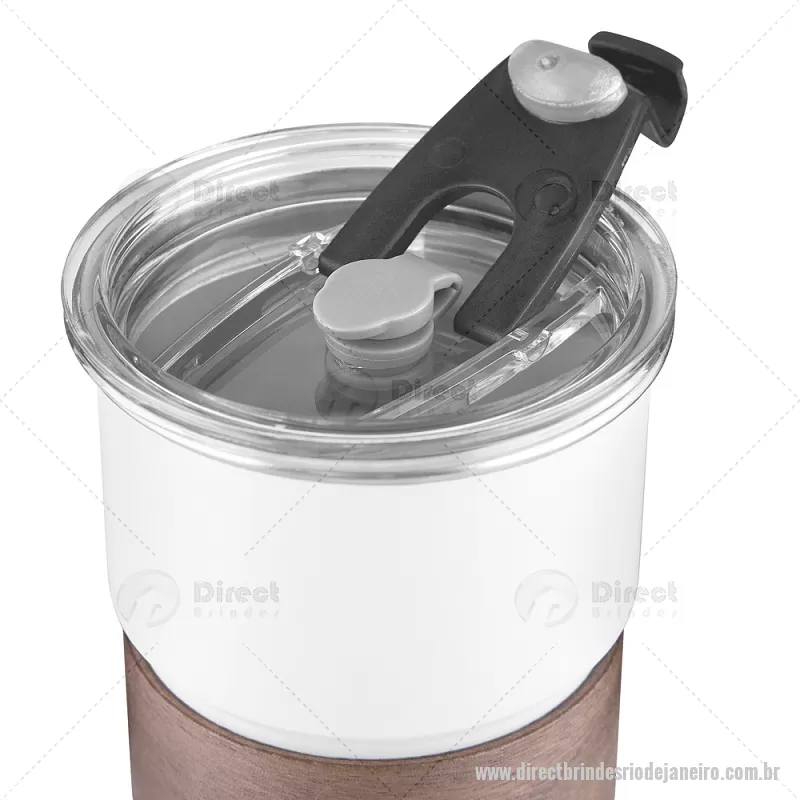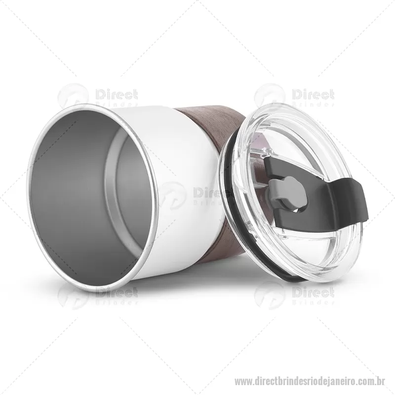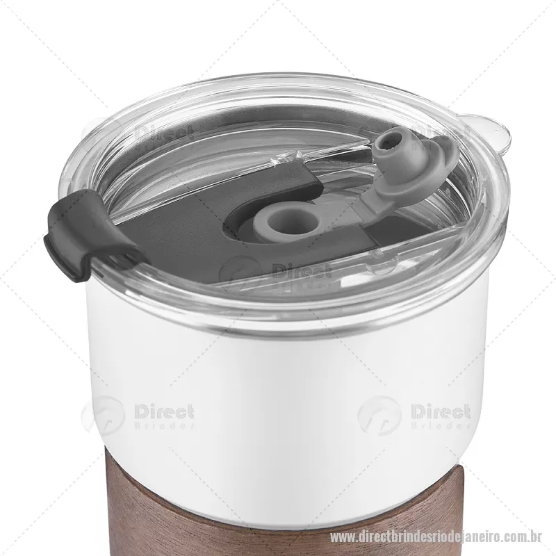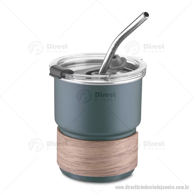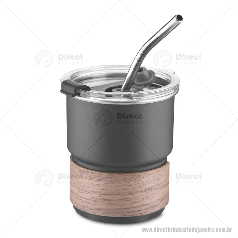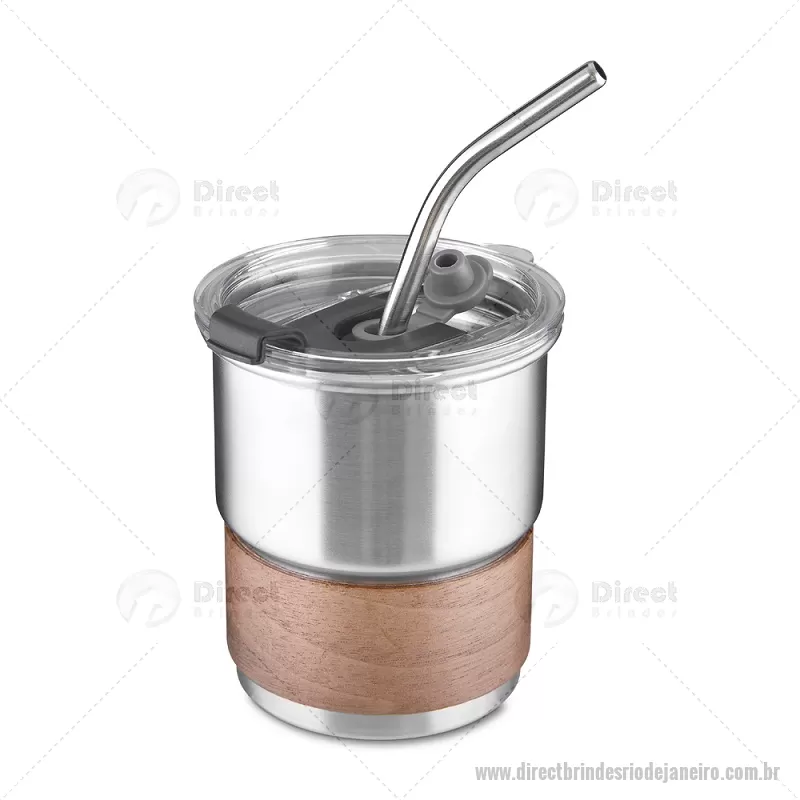 Copo em inox com Canudo Copo de parede simples em aço inox 304 com capacidade de 250ml, com canudo em inox. Tampa em plástico poliestireno (PS) que também possui um bico como forma alternativa de uso. Com pegador em fibra de noz. Possui acabamento externo com pintura fosca. Peso do Produto: 0,100kg Dimensão do Produto: 9xø7,5cm - - DRTJJCPO150