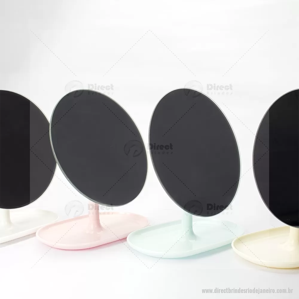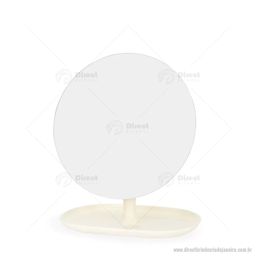 Espelho de Mesa Plástico Descrição: Espelho de mesa com estrutura compacta em plástico de fácil montagem. Conta com base fixa e pedestal giratório em 360 graus que permite ajuste prático em diferentes ângulos e posições. Altura : 25 cm x Largura : 10,7 cm x Comprimento : 15,8 cm Tamanho total aproximado (CxL): Diâmetro: 16 cm Peso aproximado (g): 195 - - DRTJJFEM118