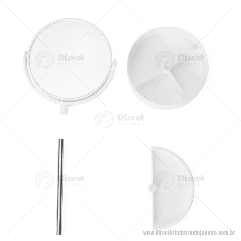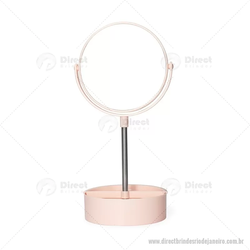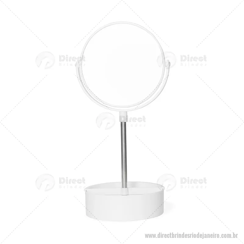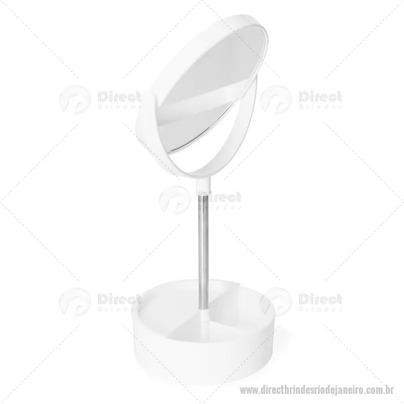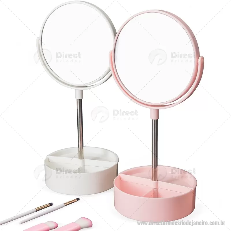 Espelho de Mesa Plástico Descrição: Espelho de mesa dupla face giratório com base e moldura feitas em plástico e pedestal de alumínio. Contém três divisórias na base para organizar de objetos diversos. Altura : 34,5 cm x Largura : 14,5 cm Peso aproximado (g): 275 - - DRTJJFEM121