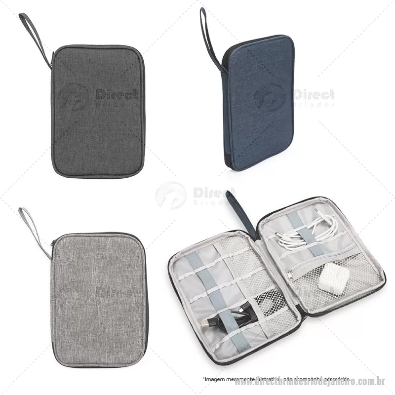 Estojo confeccionado em poliéster resistente à água. Conta com bolso interno em tela de nylon e fechamento em zíper e divisórias em diferentes tamanhos em elástico. Possui alça de mão para transporte. Obs : Imagens meramente ilustrativas, não acompanham acessórios. Altura : 15 cm x Largura : 22,5 cm x Profundidade : 1,4 cm Peso aproximado (g): 102 - - DRTJJEMB046