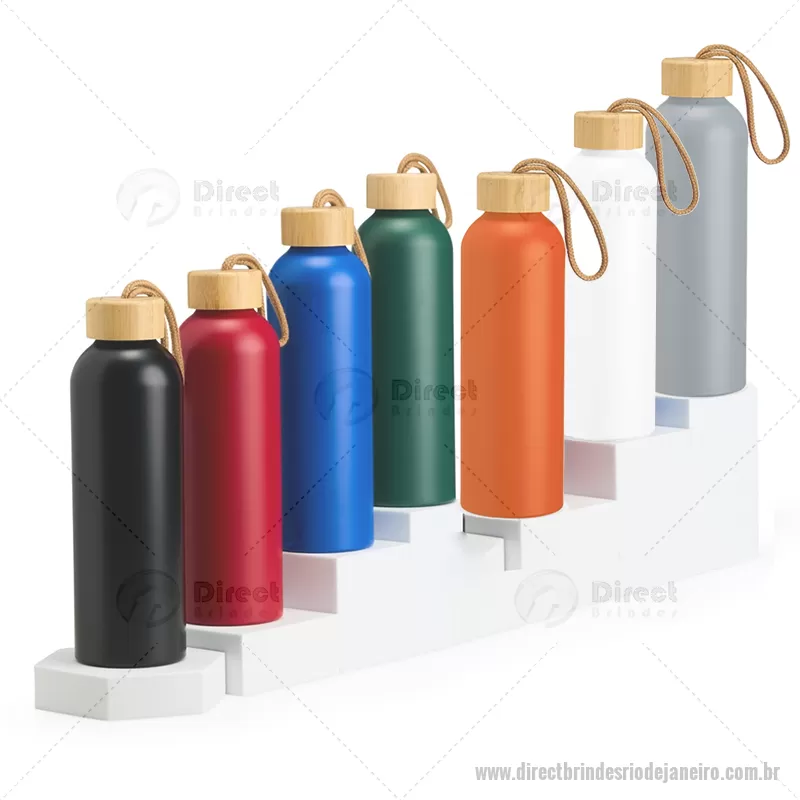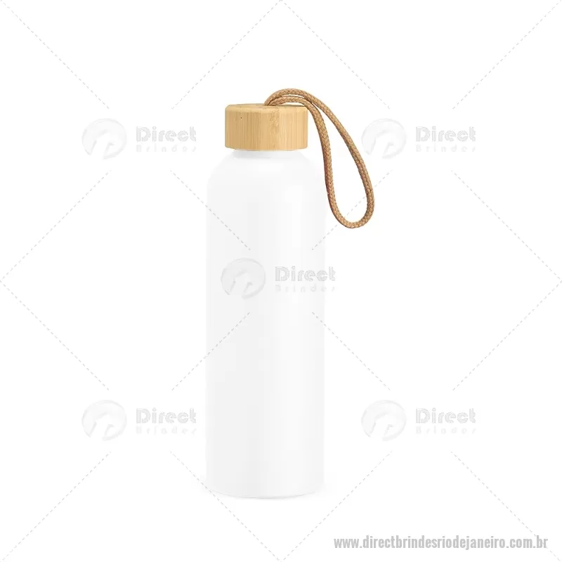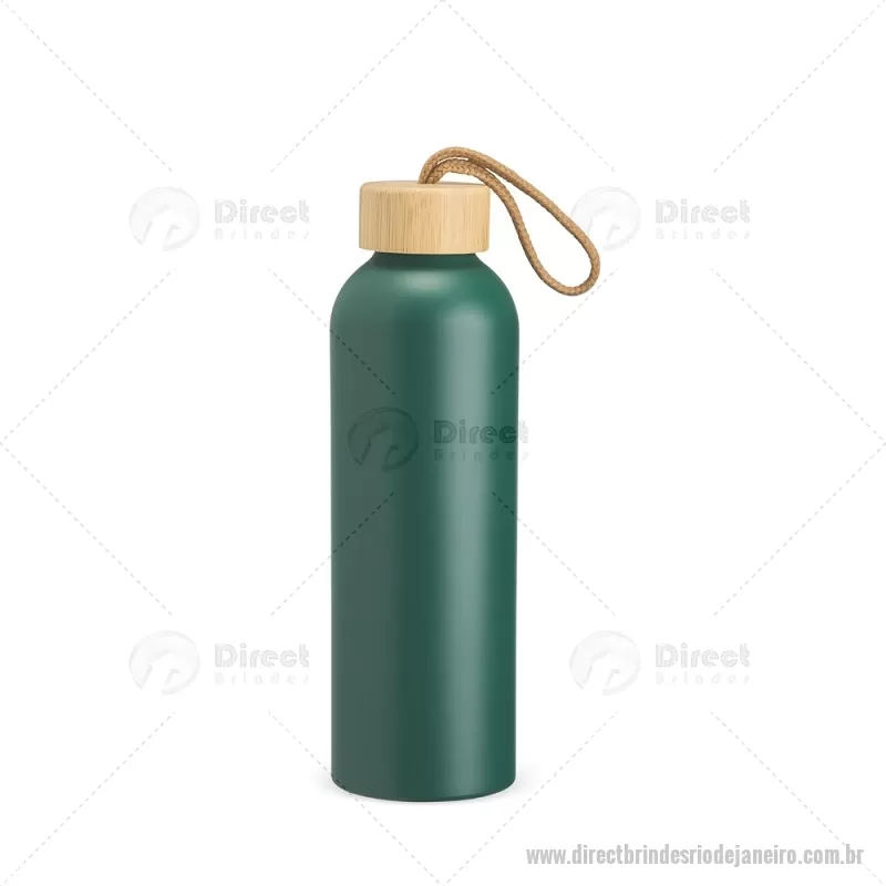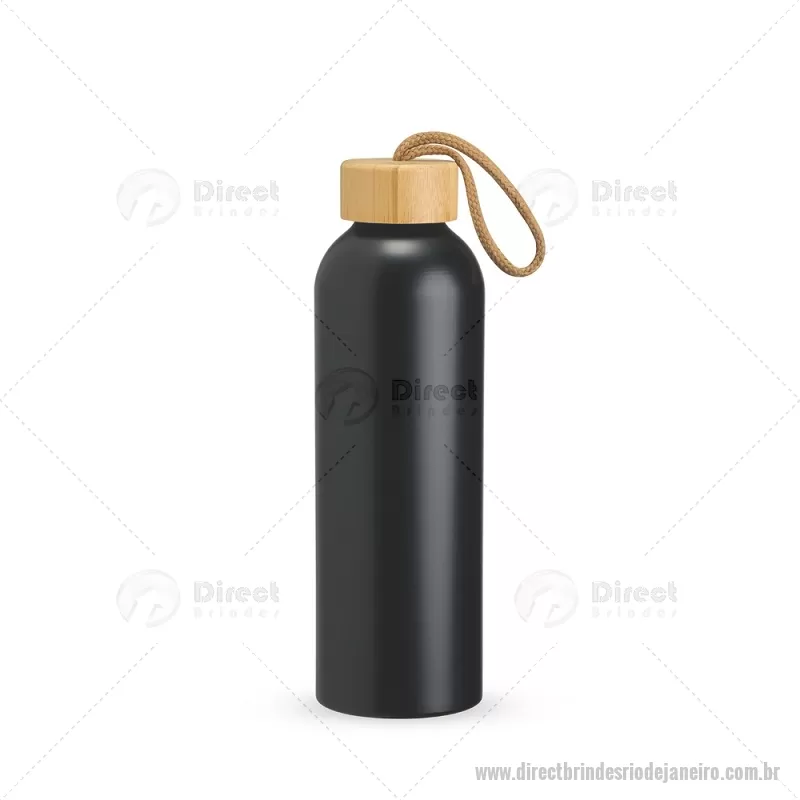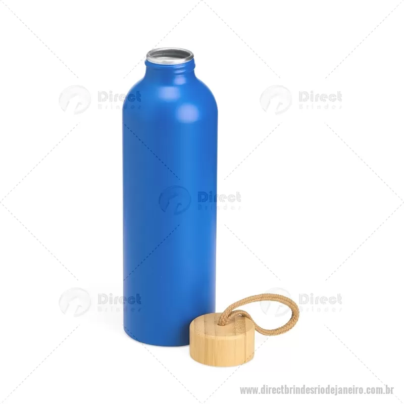Garrafa em alumínio com capacidade máxima de 800ml. Possui tampa rosqueável em bambu com alça de algodão para facilitar o transporte. Altura : 23,5 cm x Largura : 7 cm x Circunferência : 23 cm Peso aproximado (g): 111 - - DRTJJGAR155