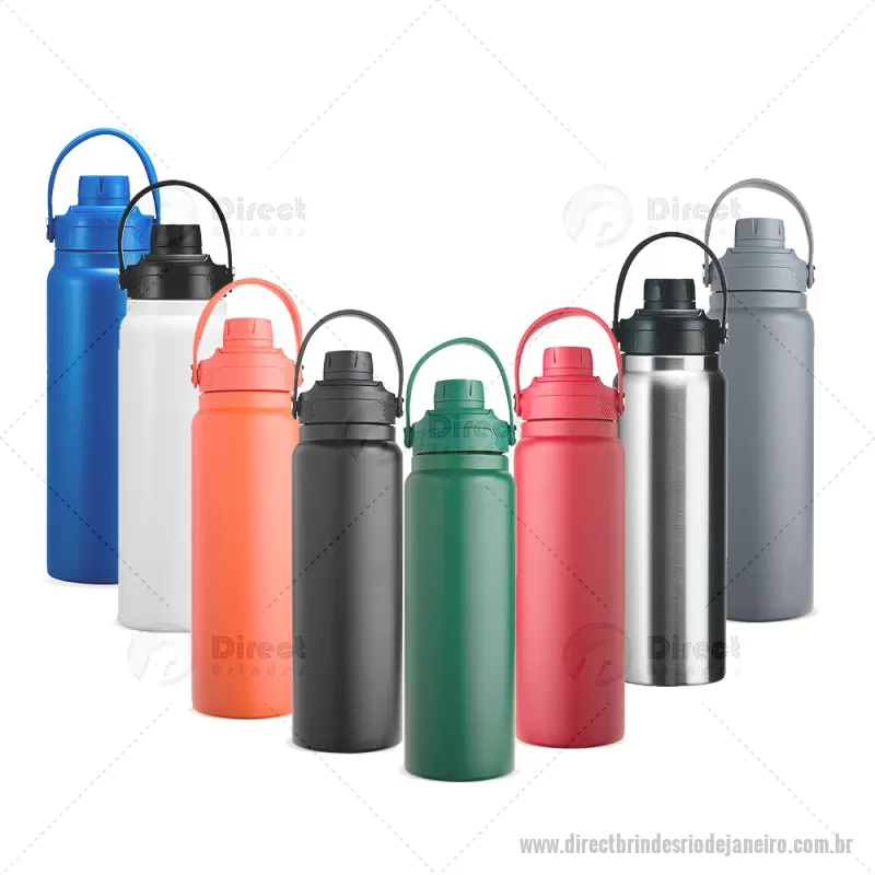 Garrafa térmica em inox com capacidade de 800 ml, desenvolvida com parede dupla e isolamento a vácuo para conservar a temperatura das bebidas por mais tempo. Possui tampa plástica rosqueável com proteção para o bocal e alça integrada, garantindo praticidade e segurança no transporte. Ideal para o uso diário. - - DRTJJGAT162