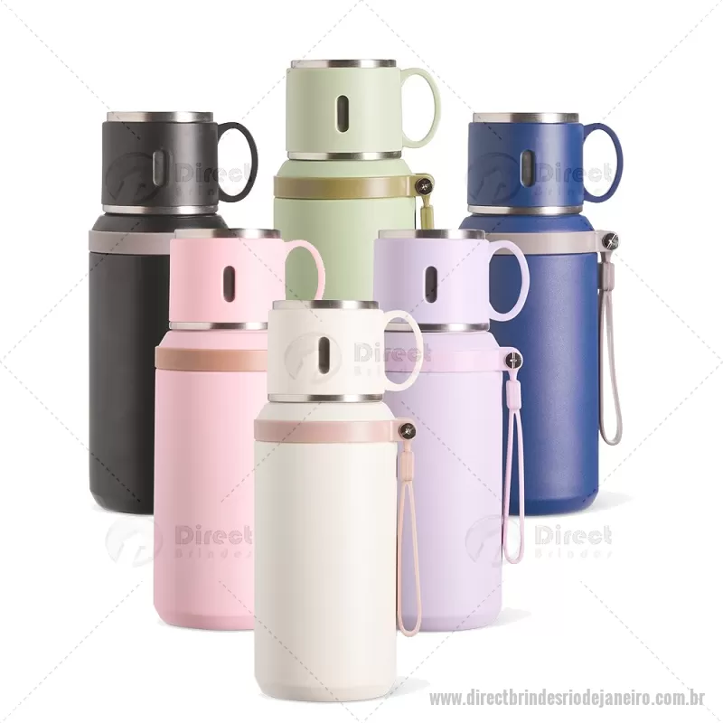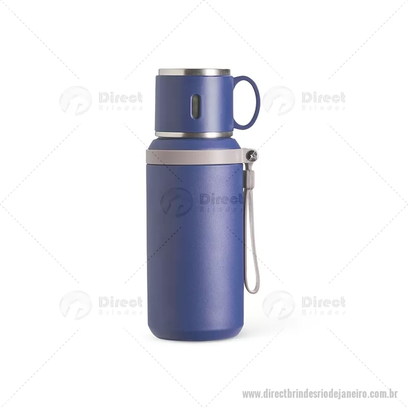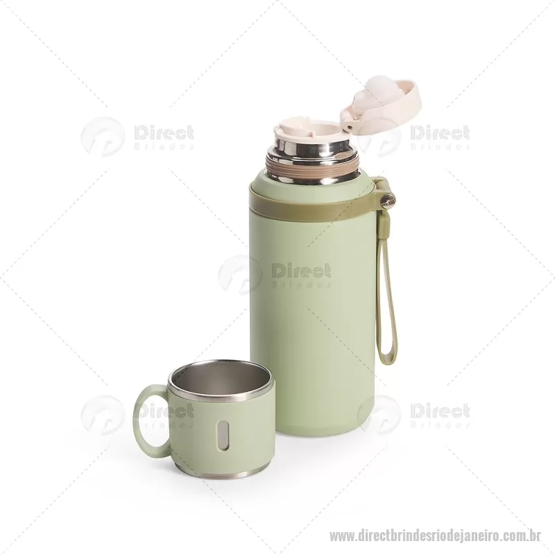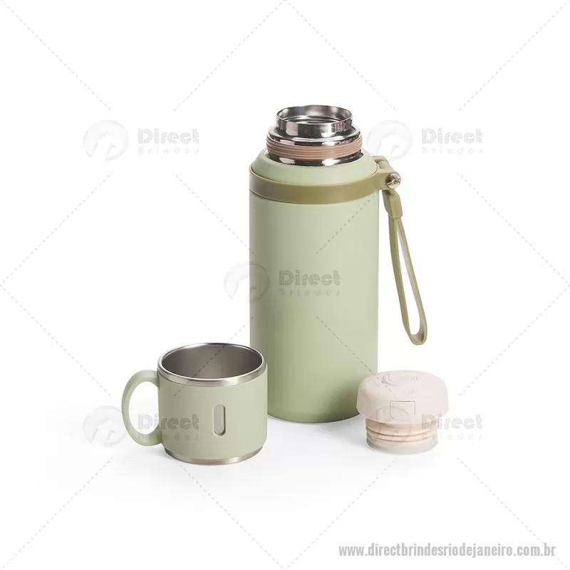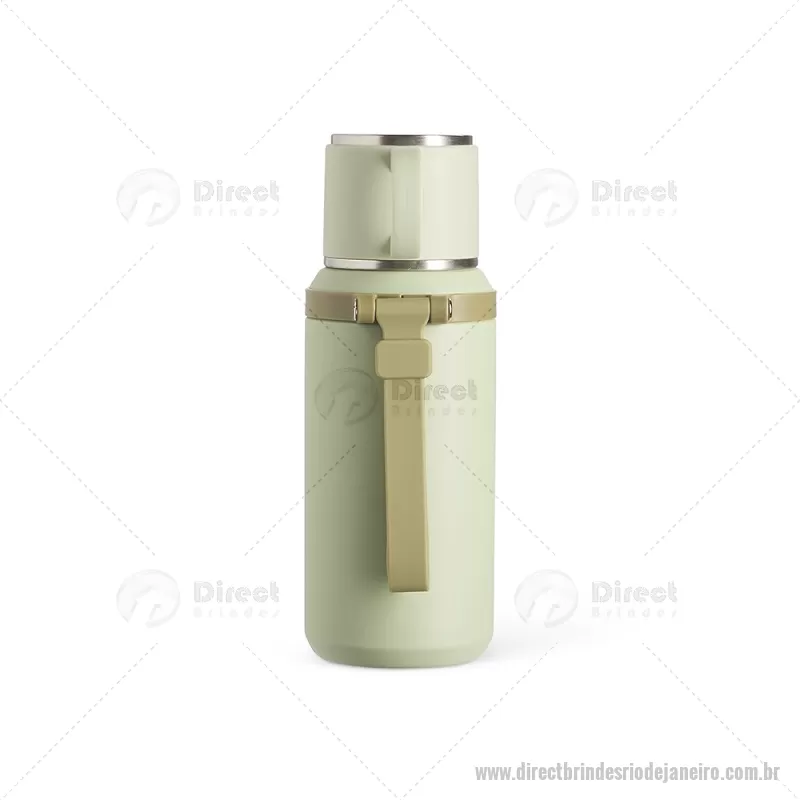 Garrafa térmica de 600 ml confeccionada em inox com acabamento em pintura eletrostática. Possui parede dupla para melhor conservação térmica, tampa interna rosqueável com anel de vedação, abertura do bocal por botão e infusor integrado. A tampa externa funciona como caneca e a alça emborrachada facilita o transporte, tornando o uso prático no dia a dia. - - DRTJJGAT160