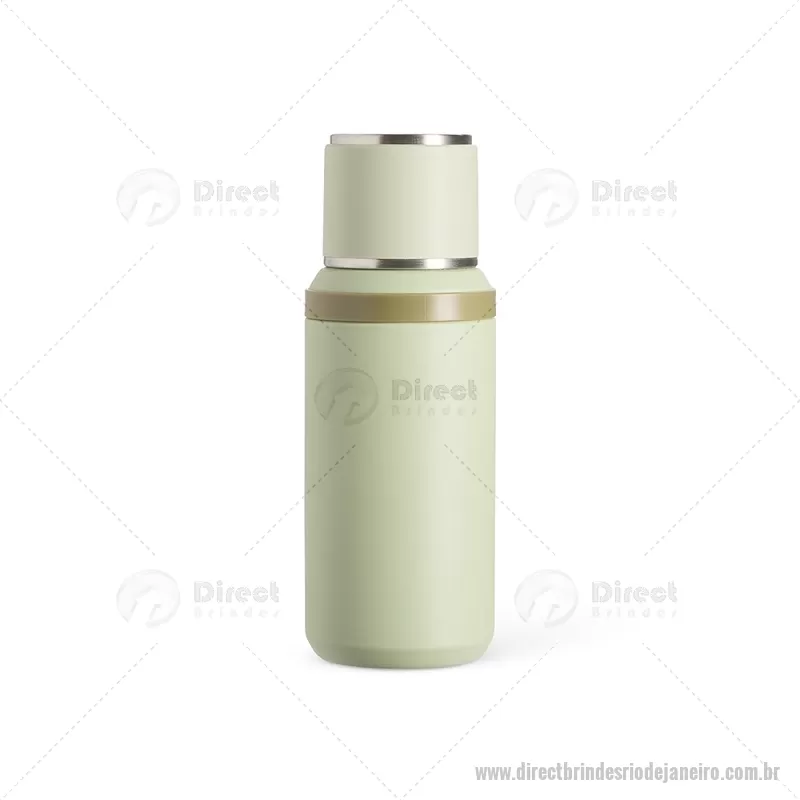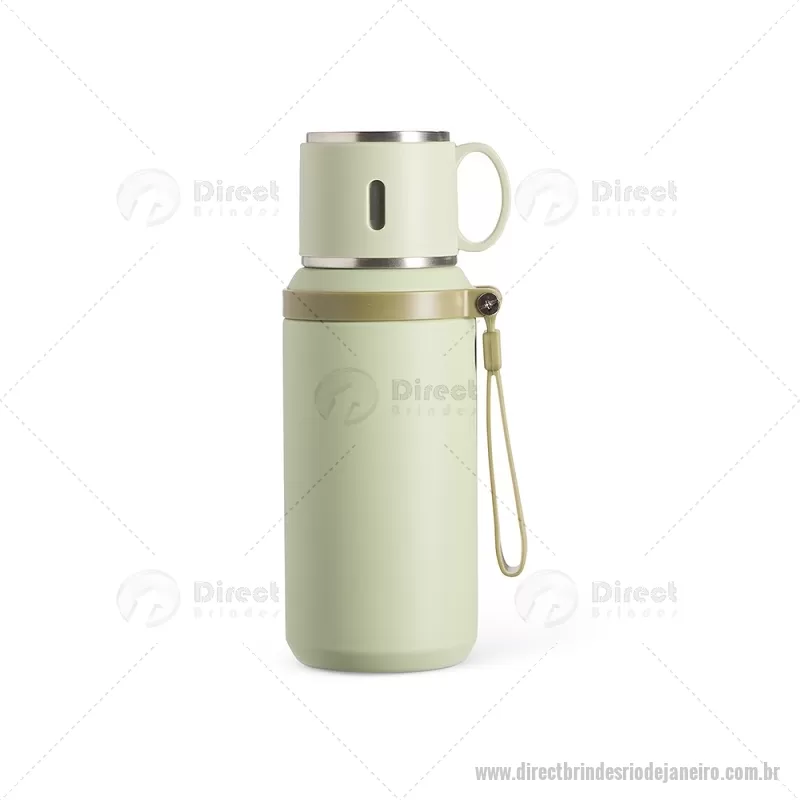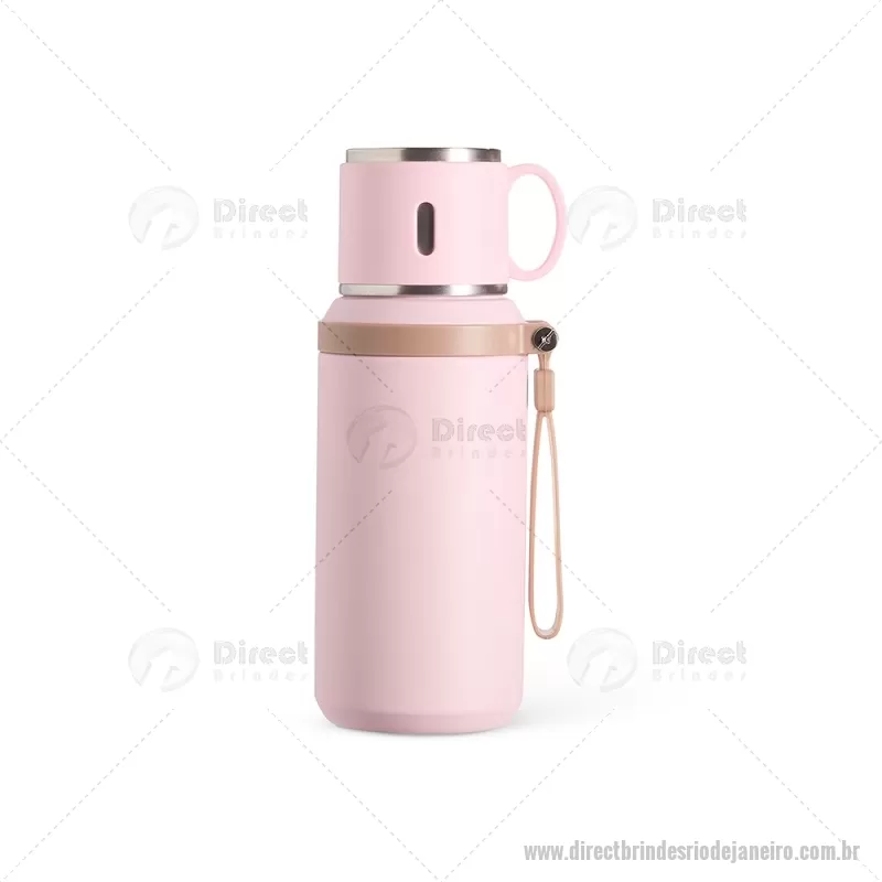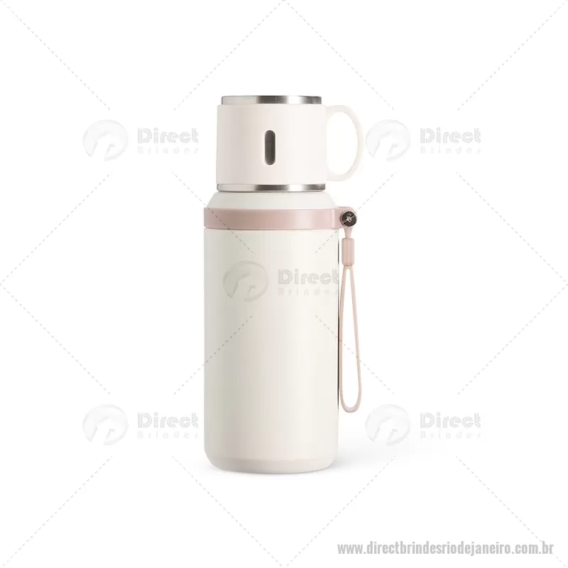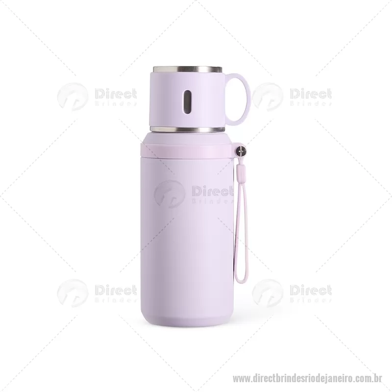 Garrafa térmica de 600 ml confeccionada em inox com acabamento em pintura eletrostática. Possui parede dupla para melhor conservação térmica, tampa interna rosqueável com anel de vedação, abertura do bocal por botão e infusor integrado. A tampa externa funciona como caneca e a alça emborrachada facilita o transporte, tornando o uso prático no dia a dia. - - DRTJJGAT160
