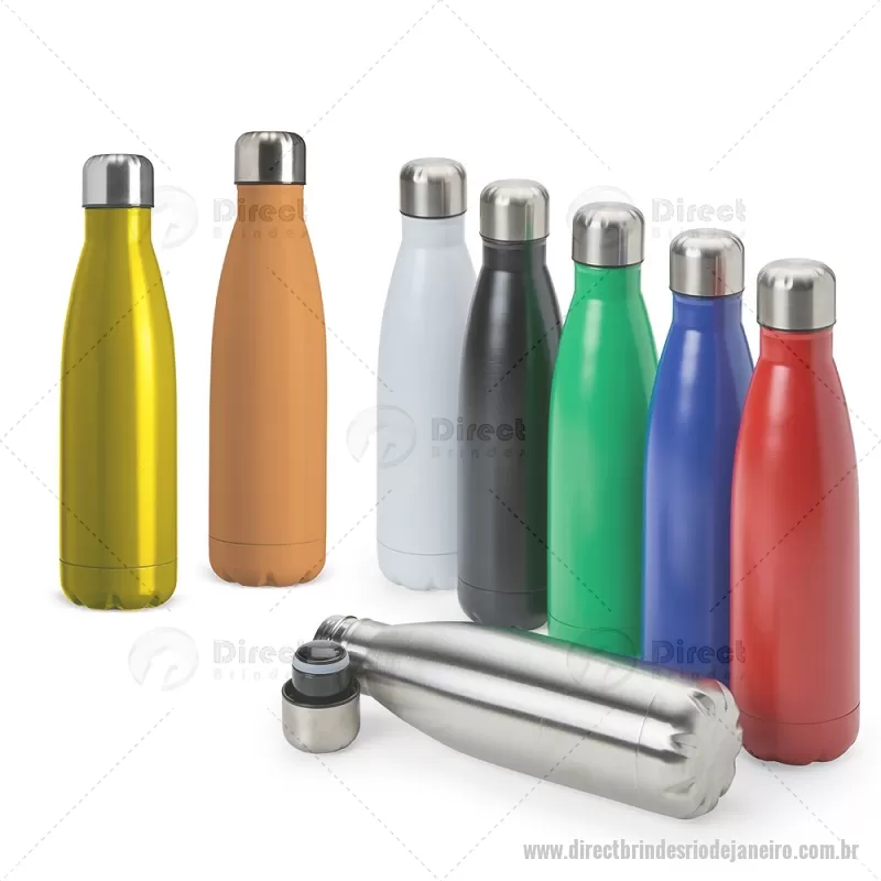 Garrafa Térmica Com Tampa Inox com capacidade de até 500ml. Conta com tampa rosqueável e estrutura em parede dupla e isolamento a vácuo, que permite conservar a temperatura de líquidos por mais tempo. Altura : 26,5 cm x Largura : 6,5 cm x Circunferência : 22,8 cm Peso aproximado (g): 272 - - DRTJJGAT157