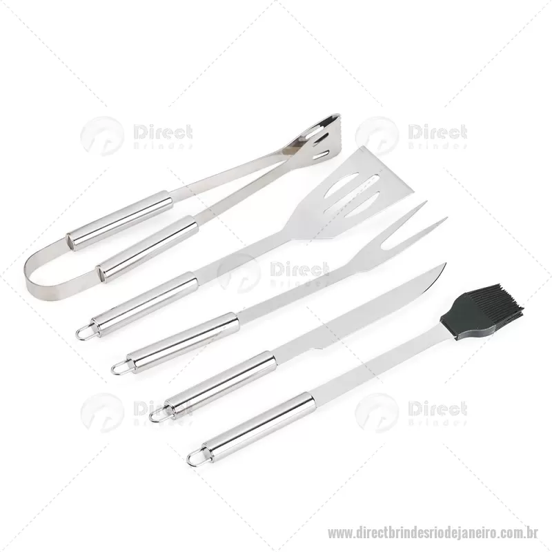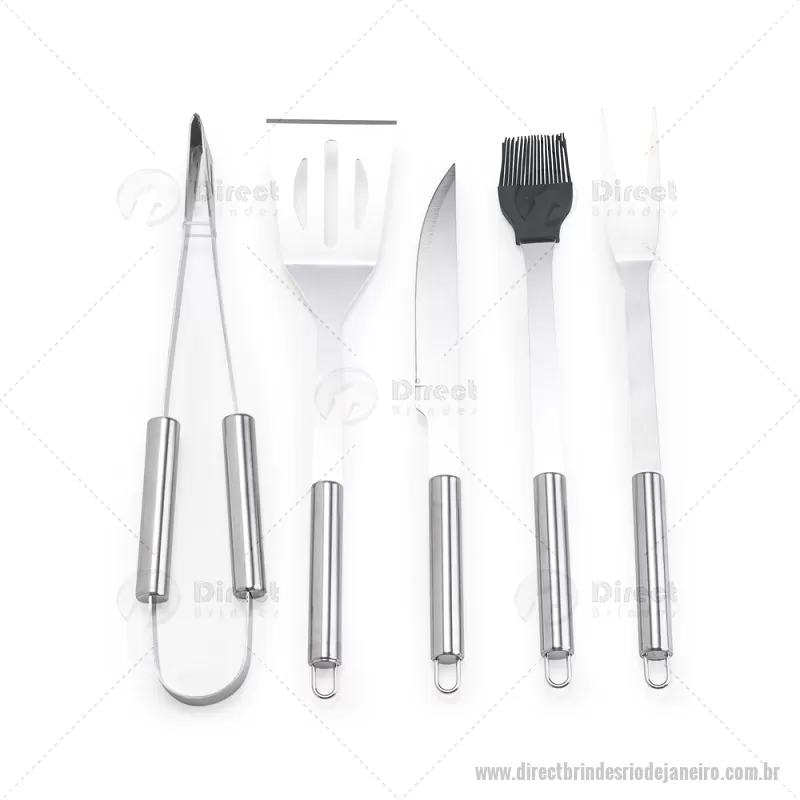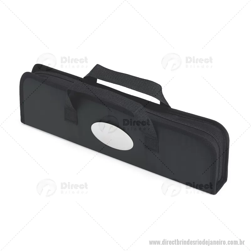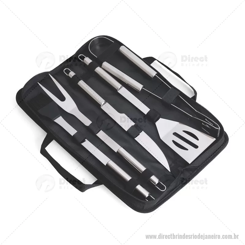 Kit Churrasco 5 Peças Descrição: Kit churrasco com cinco peças em inox. O conjunto inclui: uma faca de 6 polegadas, um garfo, uma espátula, um pincel com cerdas de silicone e um pegador. Acompanha estojo em nylon com um par de alças para transporte e placa metálica personalizável com verso autoadesivo para fixação. Altura : 4,5 cm x Largura : 11 cm x Comprimento : 38,5 cm Peso aproximado (g): 662 - - DRTJJKCH094