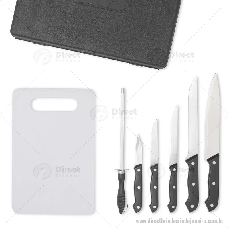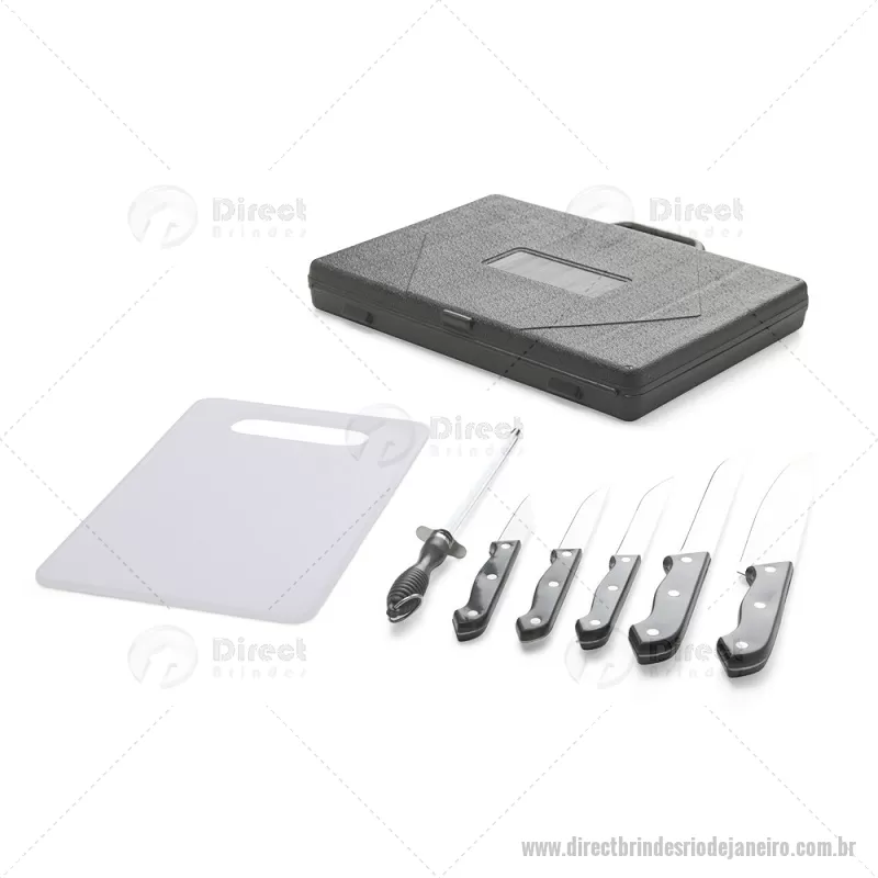 Kit Churrasco 7 Peças Um kit completo para ajudar na preparação de um churrasco inteiro e deixar o momento de confraternização ainda melhor. Este conjunto traz 7 itens, incluindo 1 tábua em plástico, 1 chaira em aço inox, e 5 facas em tamanhos diferentes do mesmo material: 1 faca de legumes (com 3 polegadas de lâmina), 1 faca de cozinha (com lâmina de 4 polegadas), 1 faca de desossar (com lâmina de 5 polegadas), 1 faca trinchante (com lâmina de 7 polegadas) e 1 faca peixeira (com lâmina de 8 polegadas). Tudo isso acompanhada por uma elegante maleta para facilitar a organização e o transporte do kit. Altura : 27cm x Comprimento : 36 cm Peso aproximado (g): 929 - - DRTJJKCH093