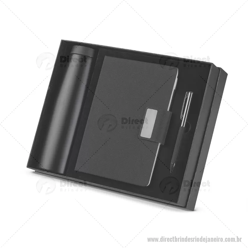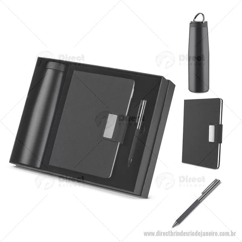 Kit escritório Caderno, Garrafa e Caneta Metalica Conjunto composto por caderno em material RPET com fechamento magnético,com 100 páginas, caneta modelo twist com detalhe em tecido RPET preto e garrafa de parede dupla em inox (304 interno e 201 externo), com capacidade de 550ml. Acompanha caixa presenteável. Peso do Produto: 0,256kg (Caderno) Peso do Produto: 0,277kg (Garrafa) Peso do Produto: 0,019kg (Caneta) Peso do Produto: 0,491kg (Caixa) Dimensão do Produto: 23,5x7,1cm (Garrafa) Dimensão do Produto: 21x14,5cm (Caderno) Dimensão do Produto: 7,6x30x24,7cm (Estojo presenteável) - - DRTJJKES083
