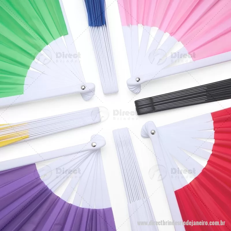 Leque confeccionado com estrutura em plástico resistente e revestimento em tecido tafetá. Leve, prático e ideal para proporcionar frescor em dias quentes, sendo fácil de transportar e usar no dia a dia. - - DRTJJFEM122