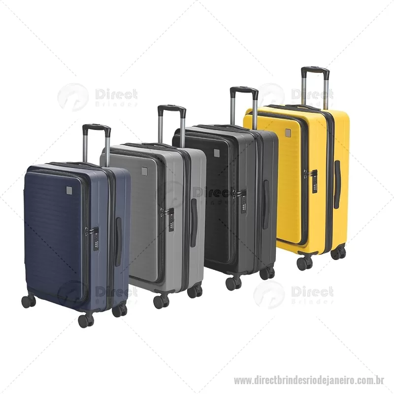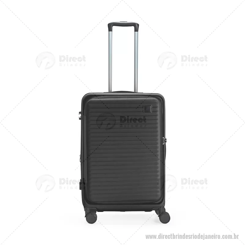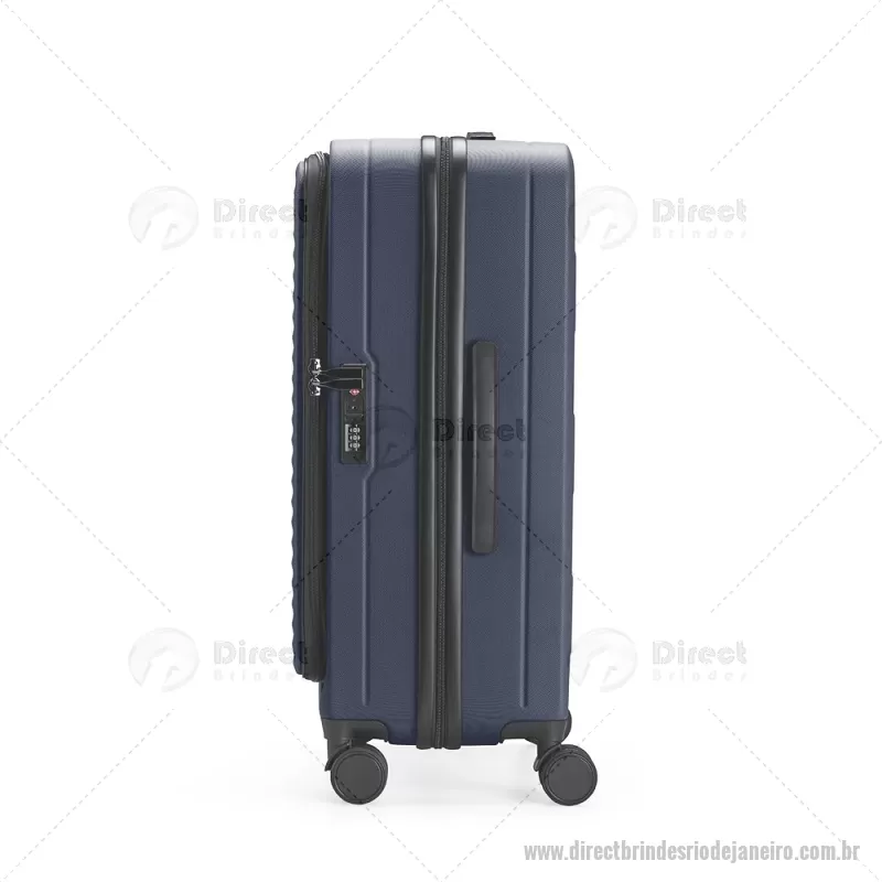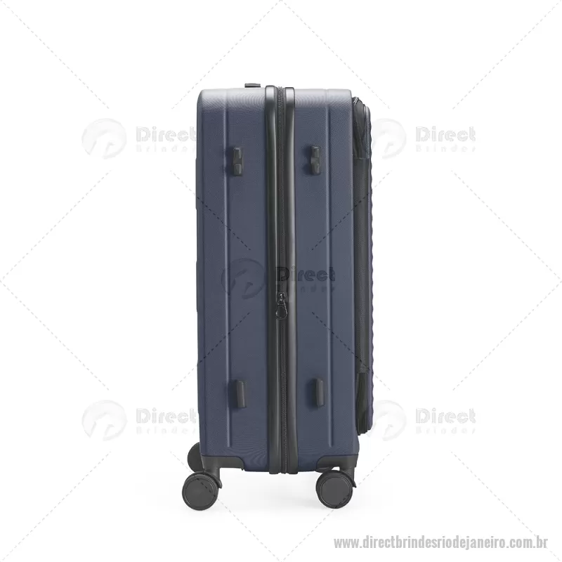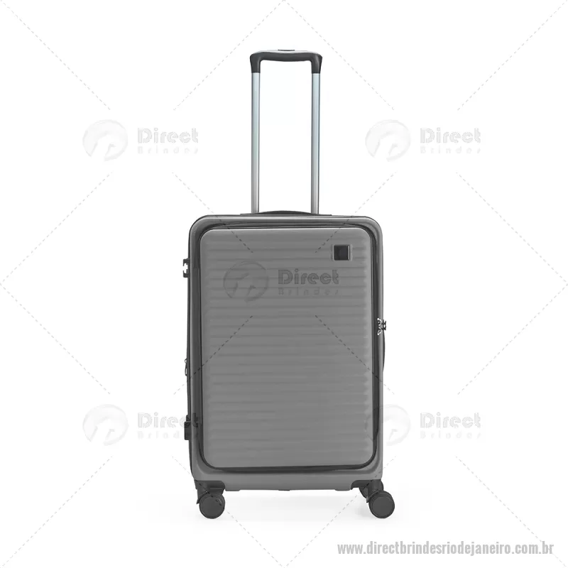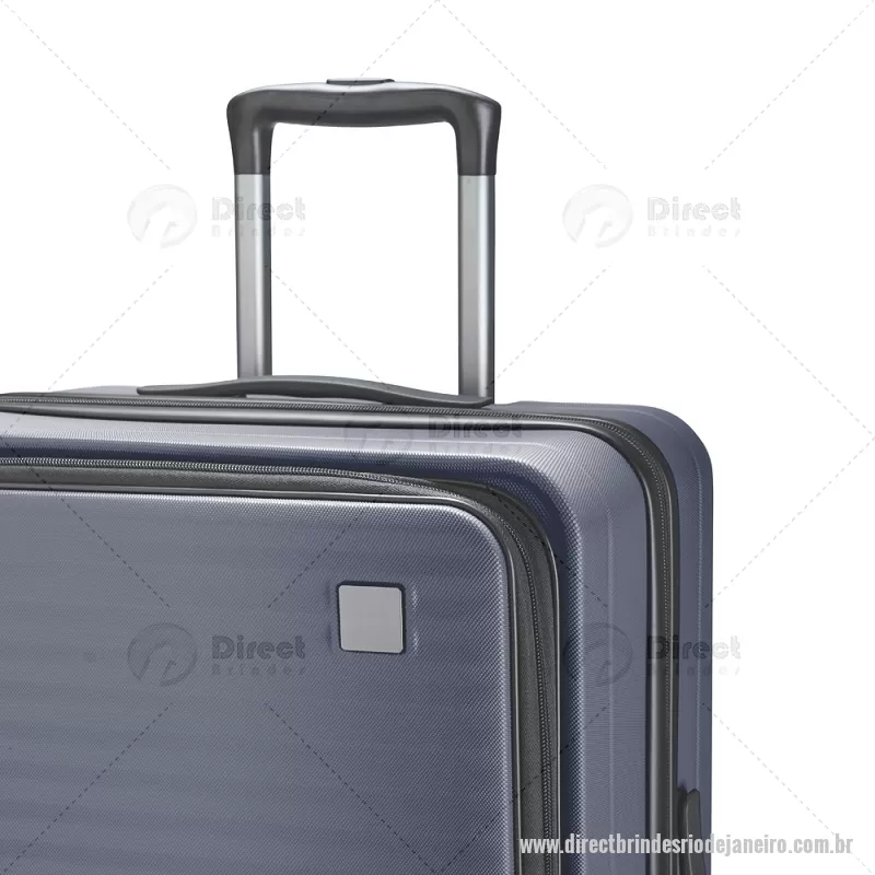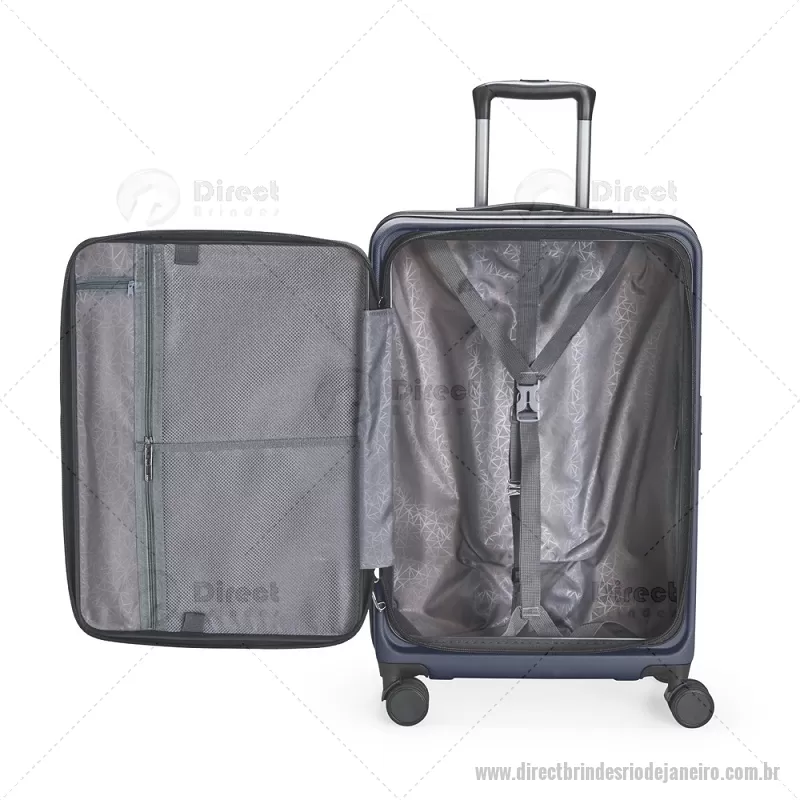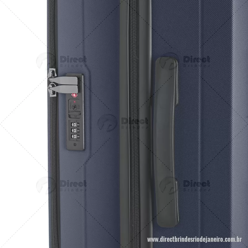 Mala de viagem com capacidade de 66 litros, fabricada em plástico ABS resistente e equipada com cadeado TSA embutido para maior segurança. Possui abertura frontal com compartimentos internos organizadores, zíperes e cinta compressora, além de zíper expansível que amplia o espaço interno. Conta com puxador retrátil de três níveis, duas alças de mão, apoios e ganchos laterais, além de rodinhas com giro 360° para deslocamento fácil. Acompanha plaquinha metálica grafite para personalização. - - DRTJJMC250