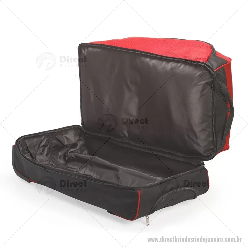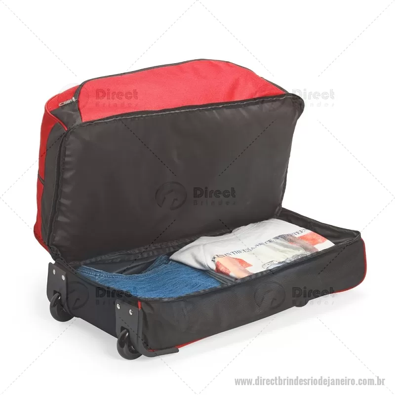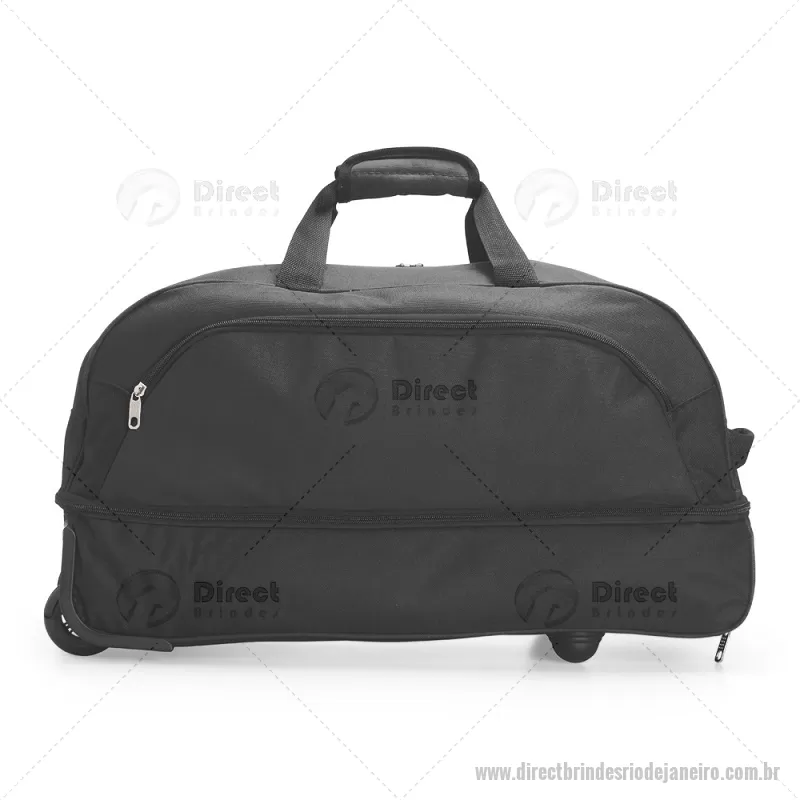 Mala versátil com capacidade de 51 litros, confeccionada em poliéster resistente à água. Possui quatro compartimentos funcionais, incluindo um espaço específico para armazenar o puxador. Oferece praticidade no transporte com alças de mão com fecho em velcro, puxador retrátil e duas rodinhas, além de contar com base reforçada e pés de apoio para maior estabilidade. Ideal para o dia a dia ou viagens curtas. - - DRTJJMC251