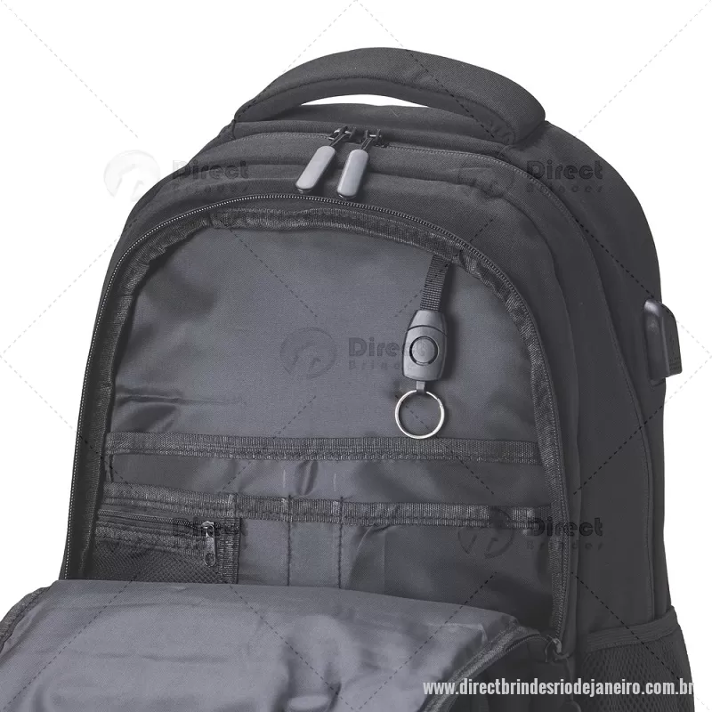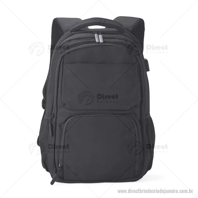 Mochila de Poliéster USB 28 litros com seis compartimentos, sendo o principal com bolso para notebook 15,6 e tablet 12,4. Com divisórias internas para acessórios e porta chave, a mochila possui adaptador USB externo, bolsos laterais telados, duas alças de mãos, área costada e alças para as costas com revestimento espumado. Altura : 43 cm x Largura : 31 cm x Profundidade : 15,5 cm Peso aproximado (g): 786 - - DRTJJMC248