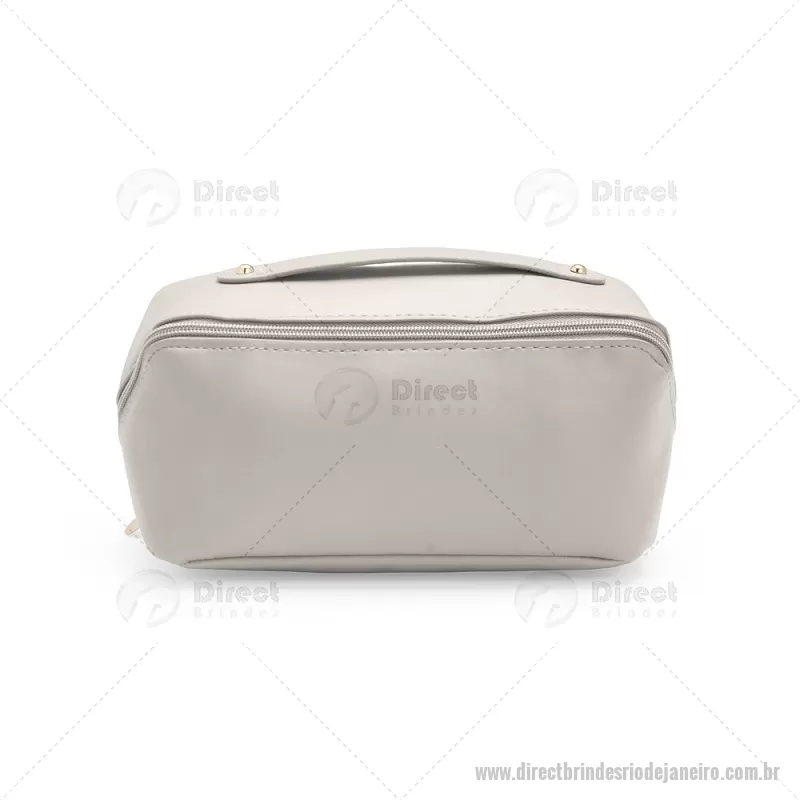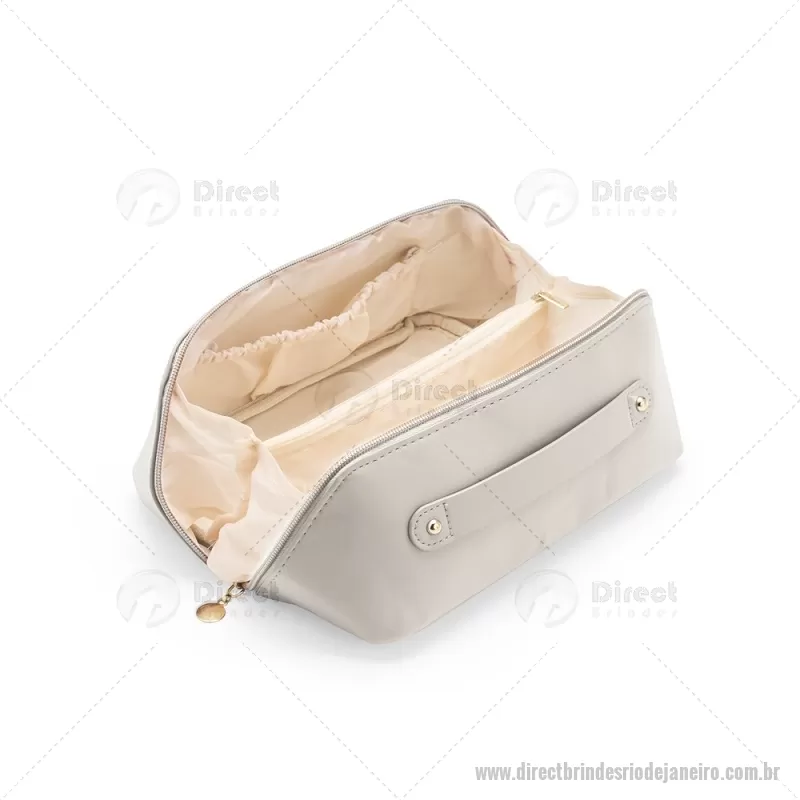 Nécessaire em (PU) poliuretano impermeável com abertura em 180 graus inspirada no formato de concha. O compartimento interno conta com dois bolsos laterais abertos e um, localizado na parte central, com fechamento em zíper. Possui alça para transporte. Altura : 11 cm x Largura : 22,5 cm x Profundidade : 9,5 cm Peso aproximado (g): 108 - - DRTJJNC143