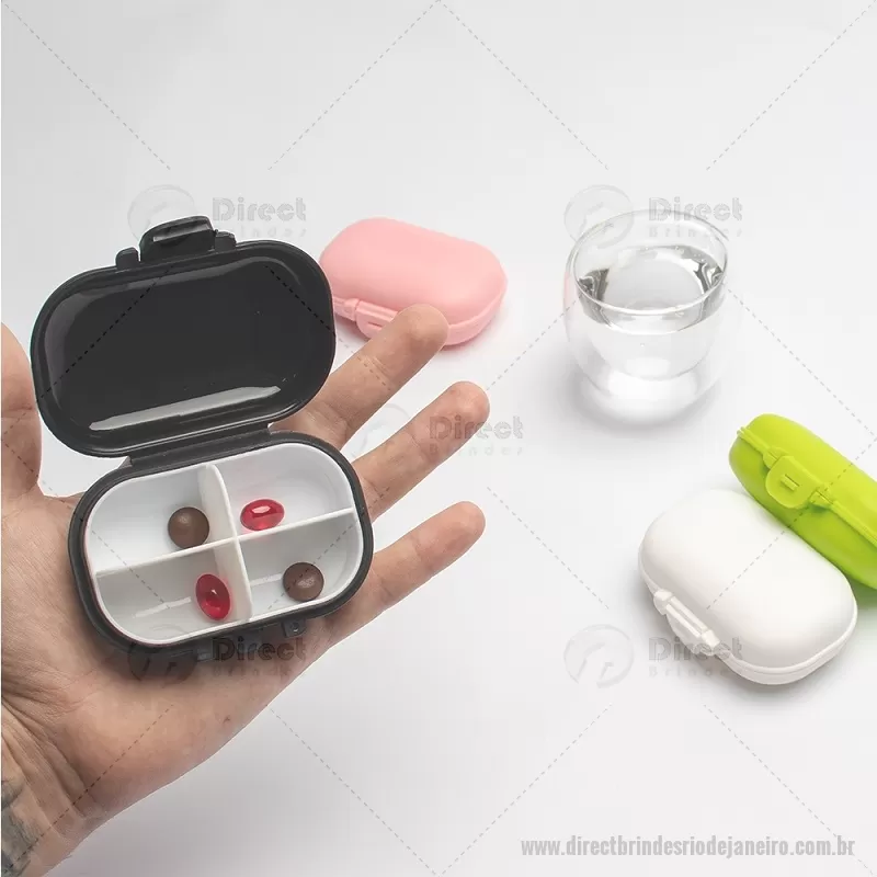 Porta-Comprimidos Plástico Descrição: Porta-comprimidos feito em plástico. Possui compartimento removível com quatro divisórias, o que facilita a limpeza e ajuda a organizar medicamentos ou pequenos objetos. Largura : 6,5 cm x Espessura : 3,7 cm x Comprimento : 9,6 cm Peso aproximado (g): 36 - - DRTJJPCP019