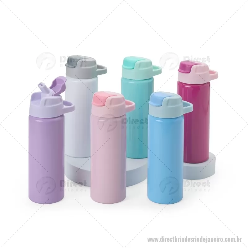 Squeeze de alumínio com capacidade máxima de 600ml. Possui tampa rosqueável em plástico com alça para transporte, protetor de bocal, bico flip top e canudo interno em plástico. Altura : 20,5 cm x Largura : 7 cm x Circunferência : 22 cm Peso aproximado (g): 117 - - DRTJJSQM087