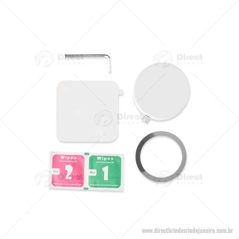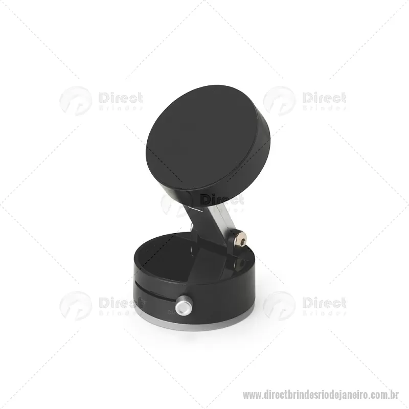 Suporte magnético para smartphones feito em plástico, com ajuste de inclinação e ventosa retrátil acionada por chave seletora para fixação em superfícies lisas. Permite uso do aparelho na vertical ou horizontal por meio do encaixe magnético, compatível com celulares com função magnética ou com anel adaptador. Acompanha dois anéis magnéticos adesivos, um adesivo em policarbonato, kit de limpeza e chave Allen. - - DRTJJTEC536