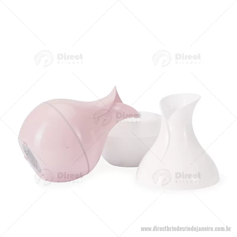 Umidificador de ar em plástico com design tipo vaso, iluminação LED e reservatório de 200 ml. Oferece modos de névoa contínua ou intermitente e funciona conectado a uma fonte de energia via entrada USB-C. Acompanha filtro de algodão e cabo USB-C. - - DRTJJTEC537